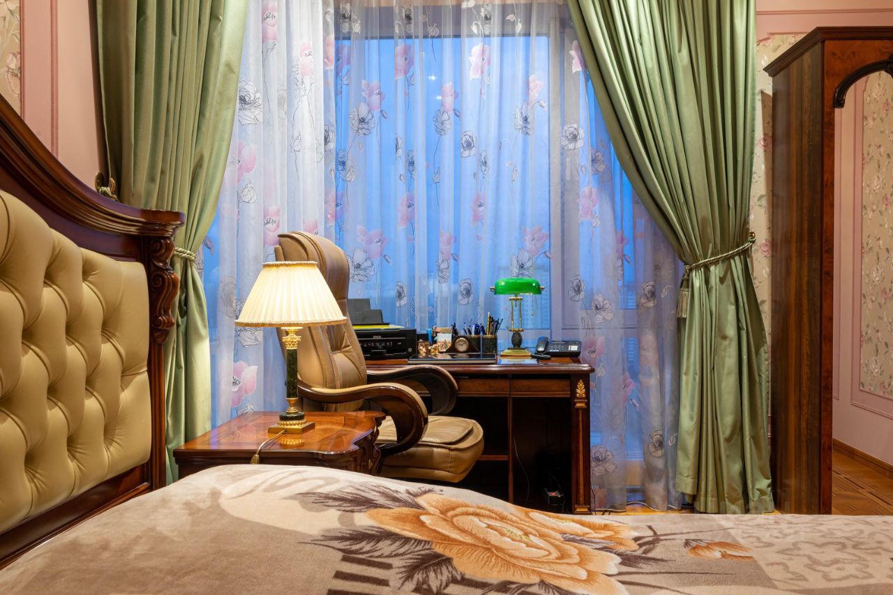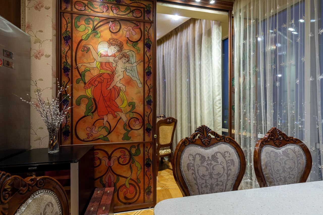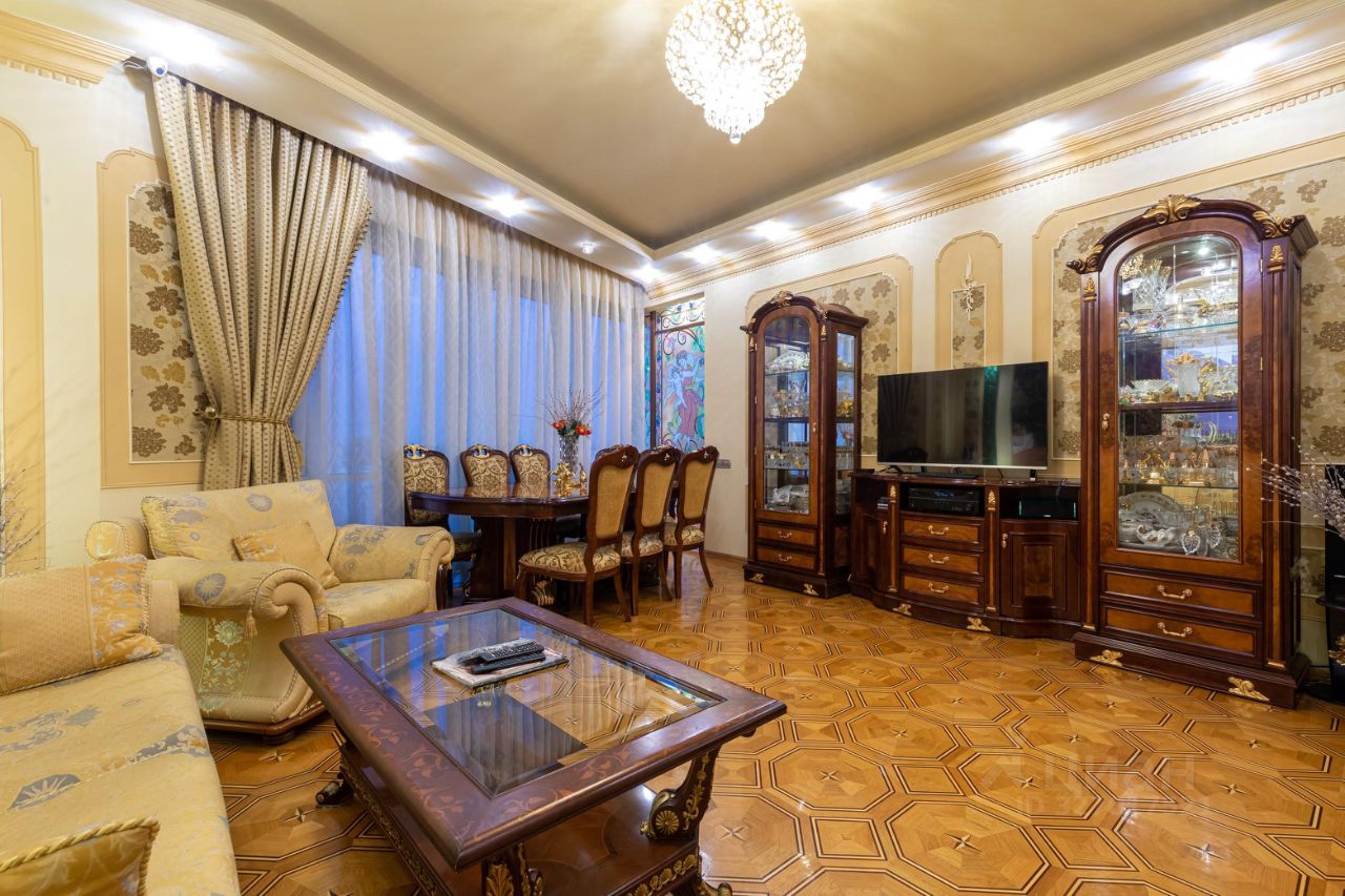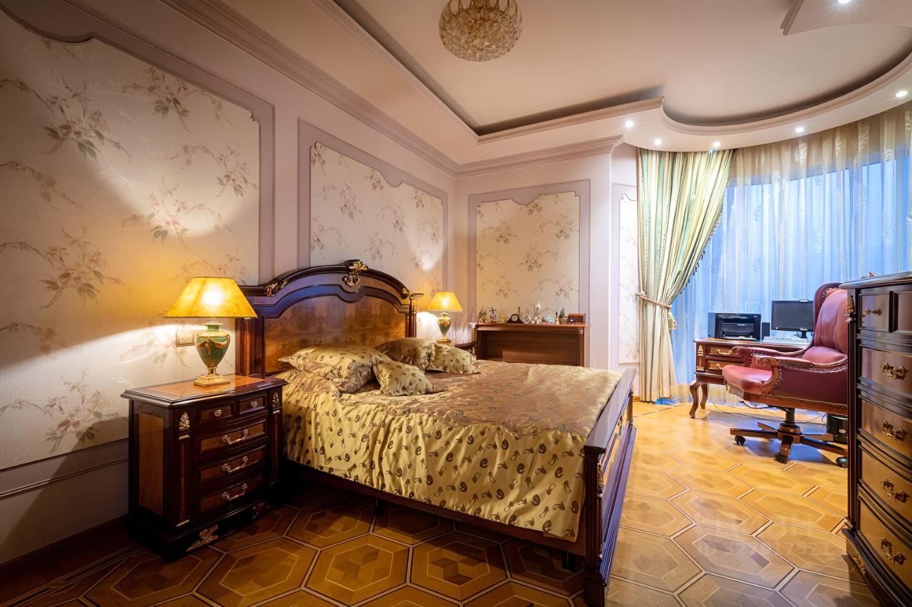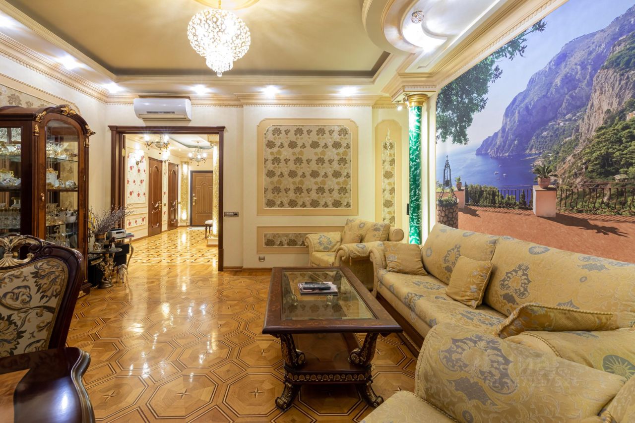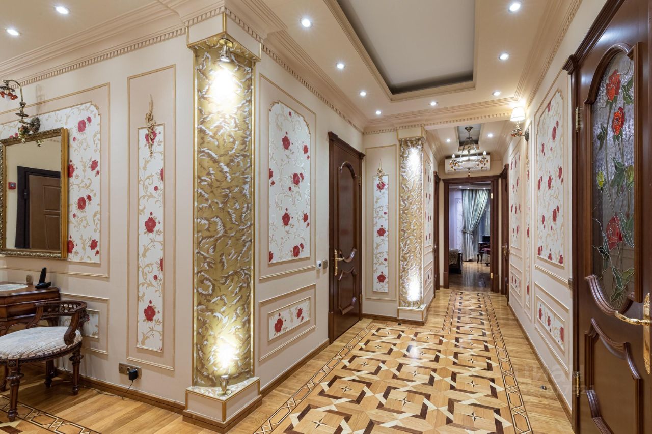 амы и Господа, вашему вниманию представлена в продажу эксклюзивная трехкомнатная квартира с премиальной классической отделкой в ЖК Миракс Парк. Квартира общей площадью 130 кв.м., расположенная на 25 этаже с панорамными видами на Тропаревский лесопарк, двор и пруд с лесным массивом. Планировка квартиры: кухня с обеденной зоной, отдельно просторная гостиная, 2 санузла, постирочная, 2 гардеробные и 2 спальни. Ремонт-класса люкс поражает изысканной роскошью отделки - лепка карнизов, висячие потолки, арки, обои тканевые заключенные в двойные рамки из материала бук с инкрустацией с угловыми элементами, бордюрами и молдингами- колоны под мрамор зеленого цвета с беловатыми жилками с золотыми лотосами , в том числе в прихожей, художественный паркет мозайка из ценных пород дерева ( дуб, красное дерево- Мербау, орех, клен, груша) от 240 347 узорных элементов на 1 м2 с разными узорами в разных комнатах, включая кухню и прихожую, в стиле Леонардо да Винчи и зимний дворец Георгиевского зала. Два сан/узла большой и гостевой, элитные дорогие керамические плитки с тремя рядами бордюров, с подогревом пола произ-во Канада, автоматическая вентиляция, все трубы REHAU, смесители, полотенцесушители, угольники золото 24 карат фирмы Migliore -Италия, аксессуары так же из золото 24 карат . Сантехника - цельная керамика произ-во Италия Cezares King Palace , сиденье унитаза из цельного ореха , душевая кабина с оздоровительным массажем производство Финляндия, мебель в ванной - имеет мраморную столешницу с золотыми ручками производство Италии. Система Аква-стоп автоматическое выключение воды, в случае утечки. Кондиционеры ''Mitsubishi''. Кухня- итальянская мебель, массив ореха. Техника Bosch. Стиральная и сушильная машина Miele. Люстры - бронза знаменитой фирмы Бохорама- Испания. Домашний кинотеатр YAMAНA- c пятью колонами, материал орех. Мебель в столовой производство Италия. Материал массив черешня с золотыми инкрустациями (стол овальной формы складная , стулья, прилавок, две витрины с подсветкой). Мягкая мебель - производство Испания Taymoble - диван и два кресла, стол массив ореха с фигурными ножками, с золотыми инкрустациями. Мебель спальни фабрика производство Италия. Материал массив ореха. Размеры кровати 2х2,2м, по бокам тумбочки прикроватные, комод и 4-ти дверный шкаф. Жилой комплекс Миракс Парк вне всяких сомнений можно назвать одним из самых ярких и красивых проектов класса премиум. Располагается он на западе Москвы в Тропарево-Никулино - тихом районе с прекрасной экологической обстановкой и развитой городской средой. Двухуровневый подземный паркинг. Имеется отдельно в продажу машиноместо. Звоните Дамы и Господа, с радостью ответим на все вопросы и организуем оперативный показ! С уважением, Екатерина.