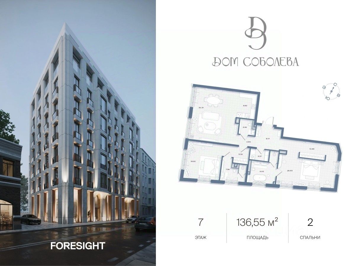 Продаётся 2-комнатная квартира в строящемся доме (Корпус 2), срок сдачи: II-кв. 2028, общей площадью 136.55 кв.м., на 7 этаже. ''Дом Соболева'' - это камерный жилой комплекс класса deluxe, расположенный на тихой и уютной улице Машкова в самом сердце Москвы. Проект создавался с особой тщательностью, чтобы предоставить своим жителям уникальное пространство для жизни, в котором сочетаются эстетика архитектурного наследия и современные стандарты комфорта. Разработанный архитектурным бюро NOWADAYS, Дом воплощает современное прочтение стиля модерн, изысканно вписанного в историческую ткань района.