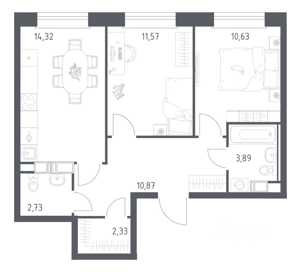 Строим кварталы для жизни с заботой о будущем. Предлагается 2-комнатная квартира комфорт-класса площадью 56,34 кв.м в корпусе 14-2 на 7-м этаже, в жилом комплексе ''Эко Бунино''.
