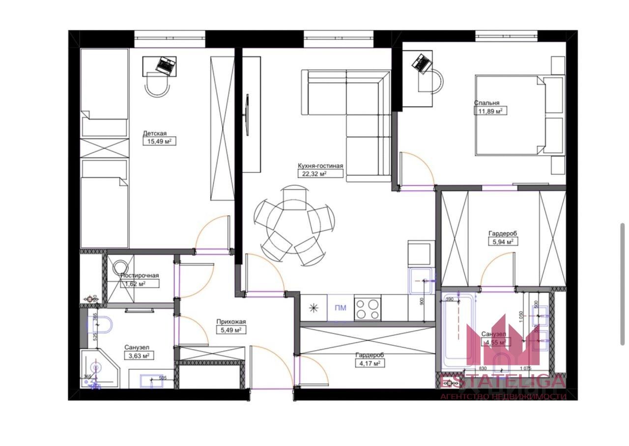 Id 60950. Вашему вниманию предлагается стильная евро-3 с дизайнерским ремонтом