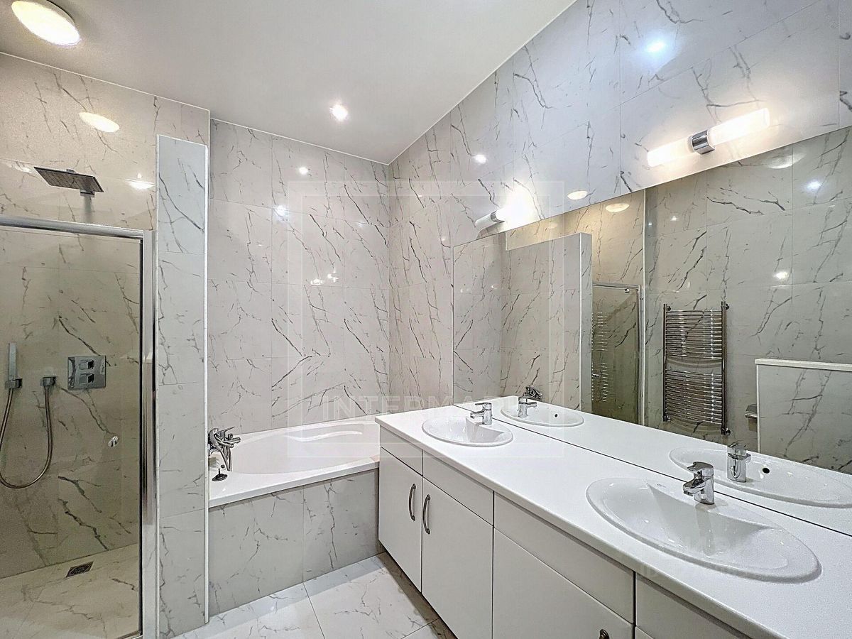 ID 47600. Уникальное предложение в элитном коттеджном поселке в лесопарковой зоне в 20 минутах езды до центра города. Трехуровневый таунхаус общей площадью 340 кв. м. Планировка дома очень комфортна для проживания семьи: цокольный этаж с полноценными окнами и стандартной высотой потолка — два помещения свободного назначения с выходом на патио, большая спальня с выходом на улицу, полный санузел с сауной, первый уровень — огромная гостиная с двусветными окнами, обеденная зона, кухня, балкон, гостевой санузел, постирочная, гараж на две машины, второй уровень — 4 изолированные спальни, 2 ванные комнаты. Дом имеет дровяной камин в гостиной, бытовую технику (плита, духовка, холодильник, посудомоечная машина, стиральная машина, сушильная машина), систему кондиционирования, гараж, парковку на две машины, примыкающую к дому. Дом предлагается без мебели. Инфраструктура поселка включает в себя детский центр Монтессори для детей от 18 месяцев до 6 лет, зал для мероприятий и спортивных занятий с возможностью бесплатного бронирования арендаторами. На территории есть детская площадка и общественный парк с футбольными воротами и беседкой для барбекю. В зимнее время на территории общественного парка действует каток. В ЖК напротив есть продуктовый магазин, в 5 минутах на машине — супермаркет ''Мираторг'' и фитнес-центр со СПА-зоной. PLEASE FEEL FREE TO CONTACT INTERMARK REAL ESTATE TO GET DETAILED INFORMATION OR TO SET UP A VIEWING! 24/7 HELP DESK SERVICE WITH ENGLISH -SPEAKING OPERATORS