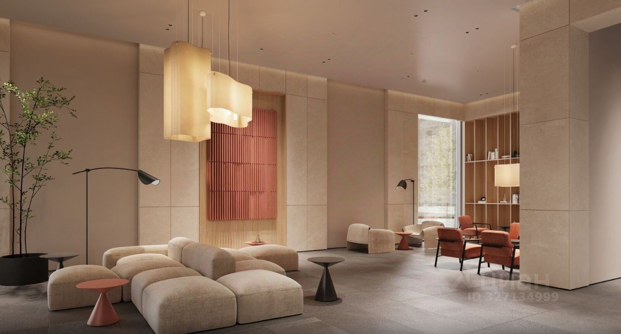 • дизайнерские лобби от бюро ABOVE ARCHITECTURE с панорамными окнами, интерьерами в теплой цветовой гамме и мягкой зоной ожидания располагаются в каждой башне,