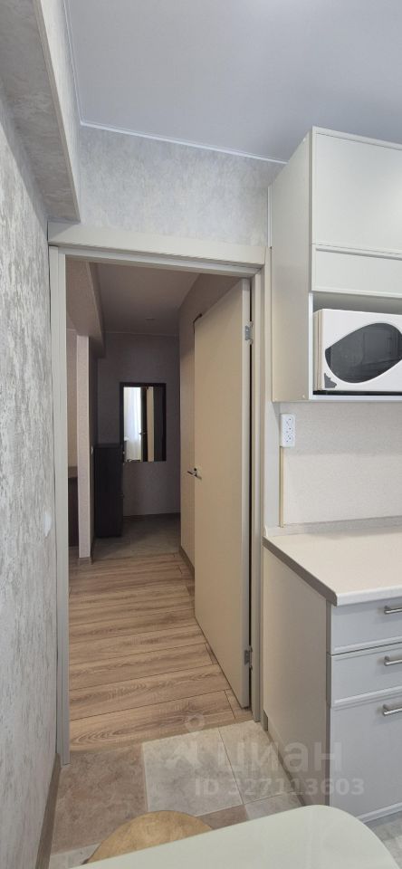 Комнаты смежные (просторная гостиная и спальня с гардеробной). Обустроенная кухня.