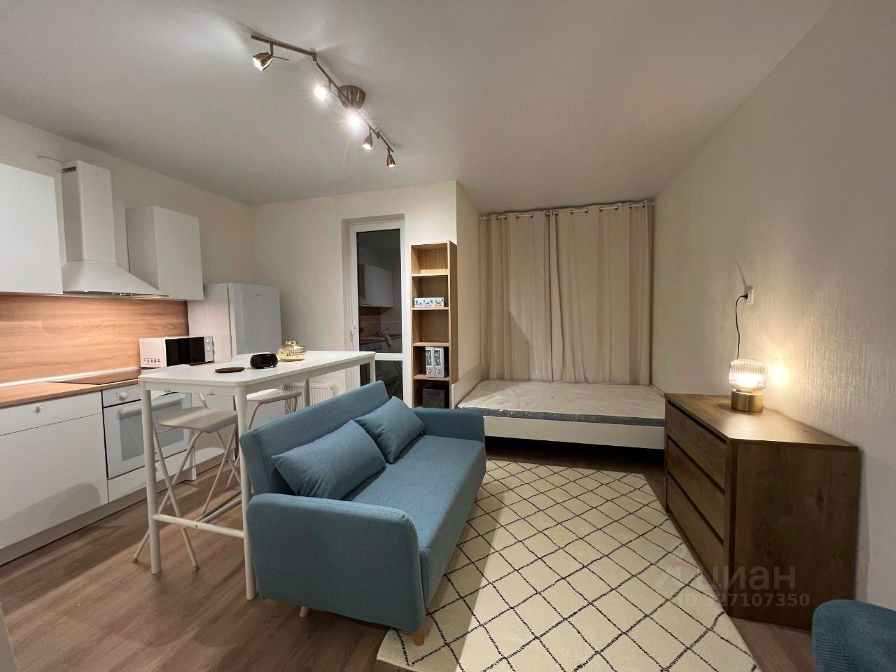 Арт. 131646410 Предлагается просторная студия 28,4 кв. м. с современным дизайнерским ремонтом в ЖК Кленовые Аллеи. В квартире грамотно выполнено зонирование, продуманы места для хранения, спальная зона.
