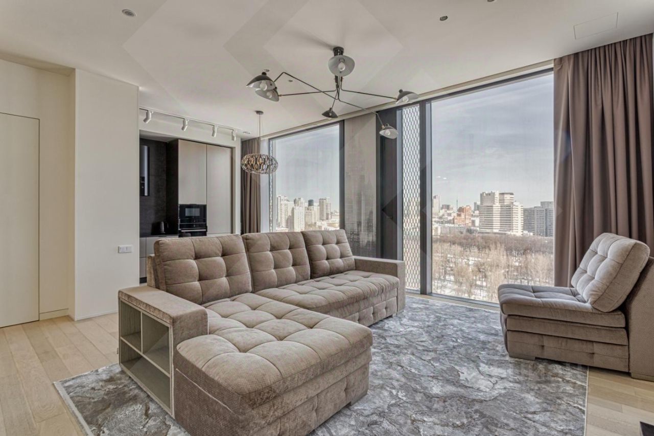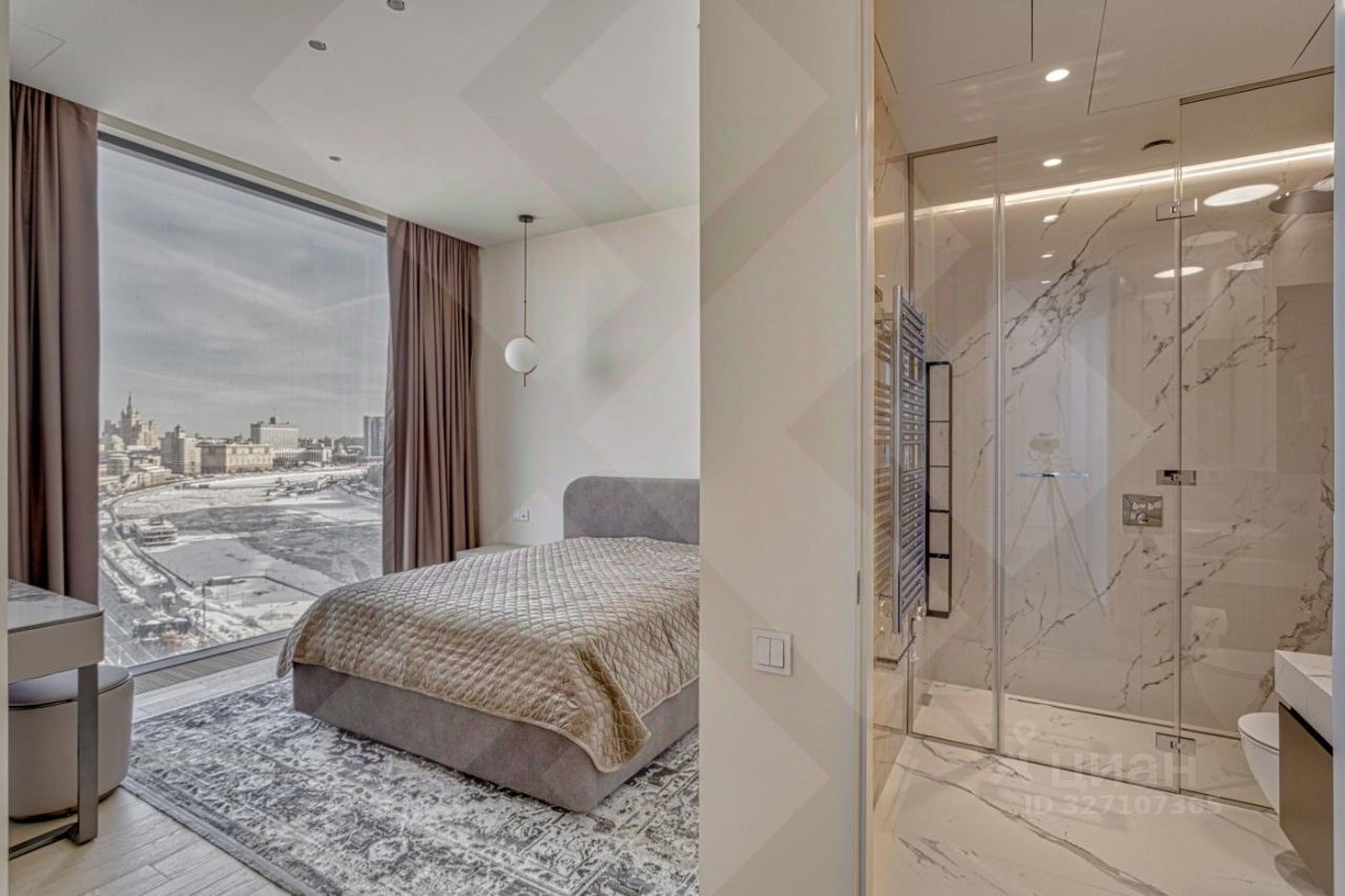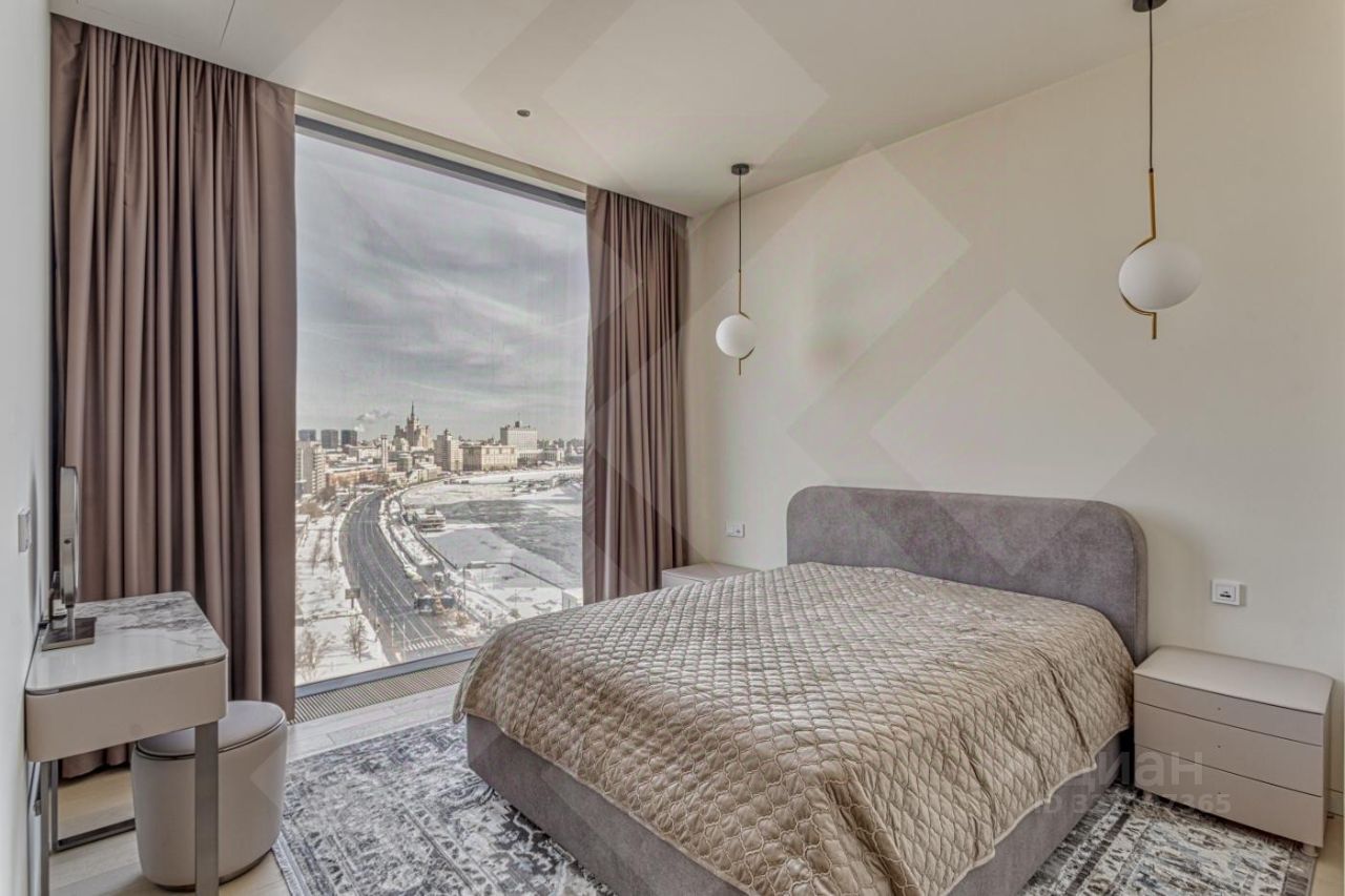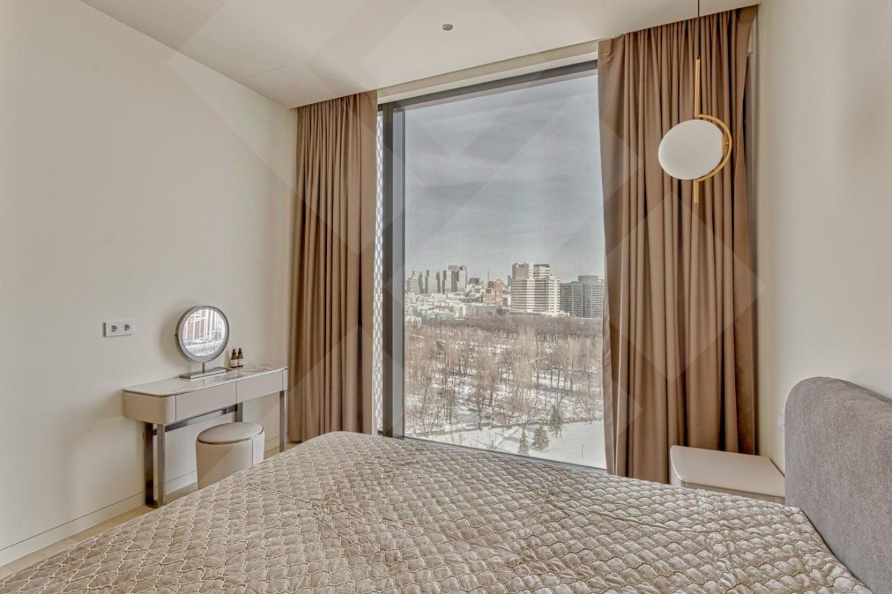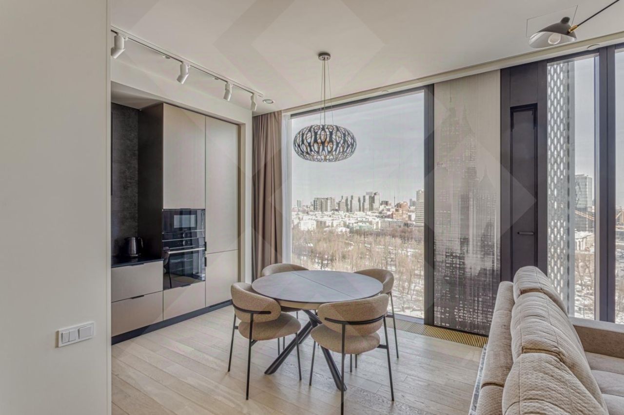 Роскошная двухкомнатная квартира в аренду в ЖК Capital Towers: персонализированный дизайн, премиумматериалы и панорамные виды на парк и реку - всего в 5 минутах ходьбы от МоскваСити. Продуманная планировка и отделка: Кухнягостиная. Итальянский кухонный гарнитур с премиумбытовой техникой (сенсорное управление, ЖКэкраны) и электрическим винным шкафом. Кастомный раскладывающийся стол с отделкой камнем, стеклом и металлом. Гостиная зона. Диван и кресло фирмы ''Эстетика'' (стоимость комплекта - 1,5 млн руб.), ковёр премиумкласса, телевизор The Frame с плотным прилеганием к стене, полноразмерный встроенный шкаф с отделкой из шпона. Холл. Четырёхметровый встроенный зеркальный шкаф с кастомным наполнением от профессионального дизайнера интерьера. Спальная зона.
