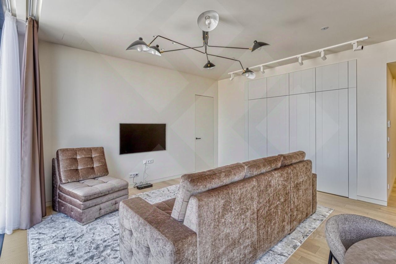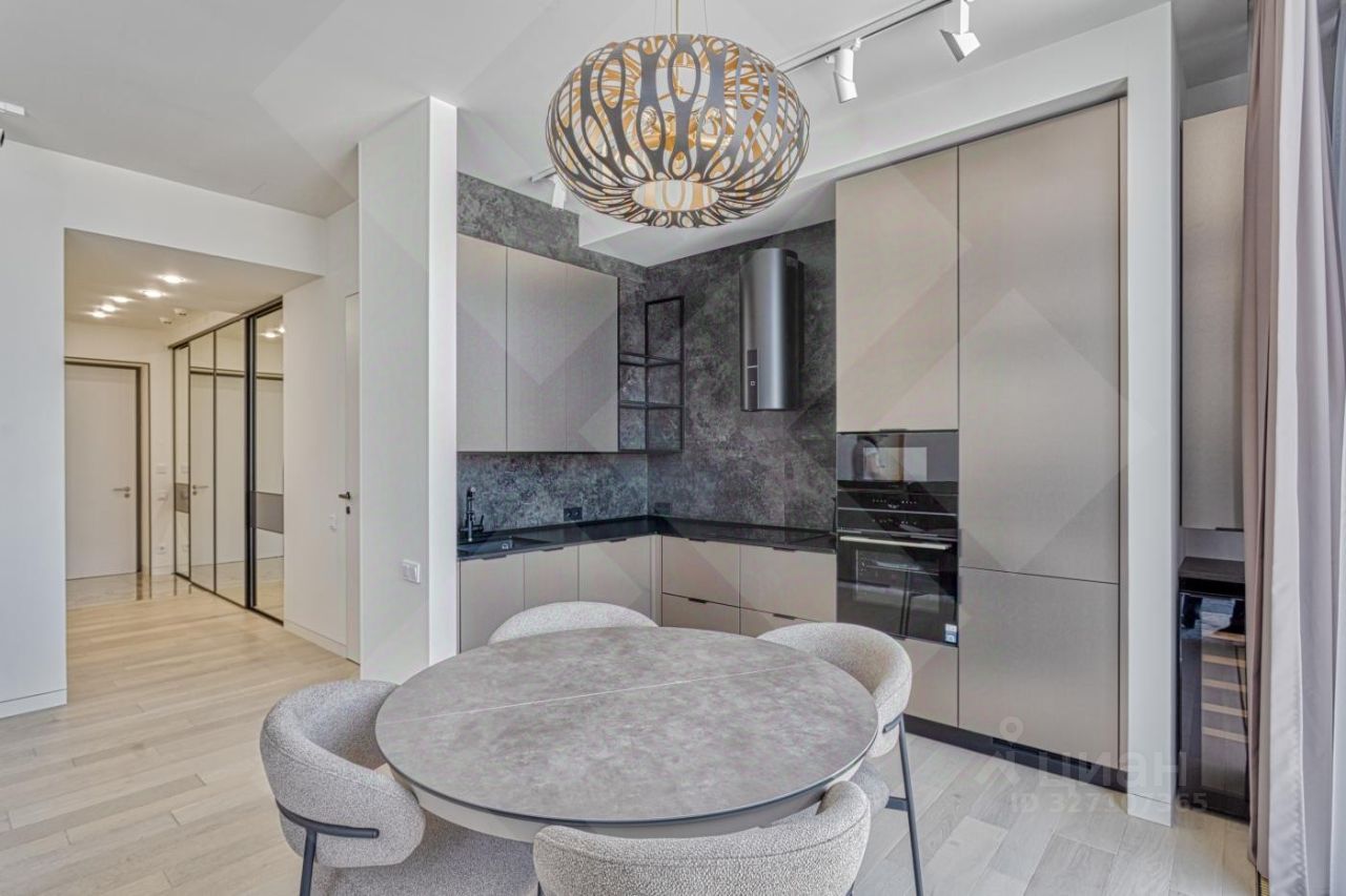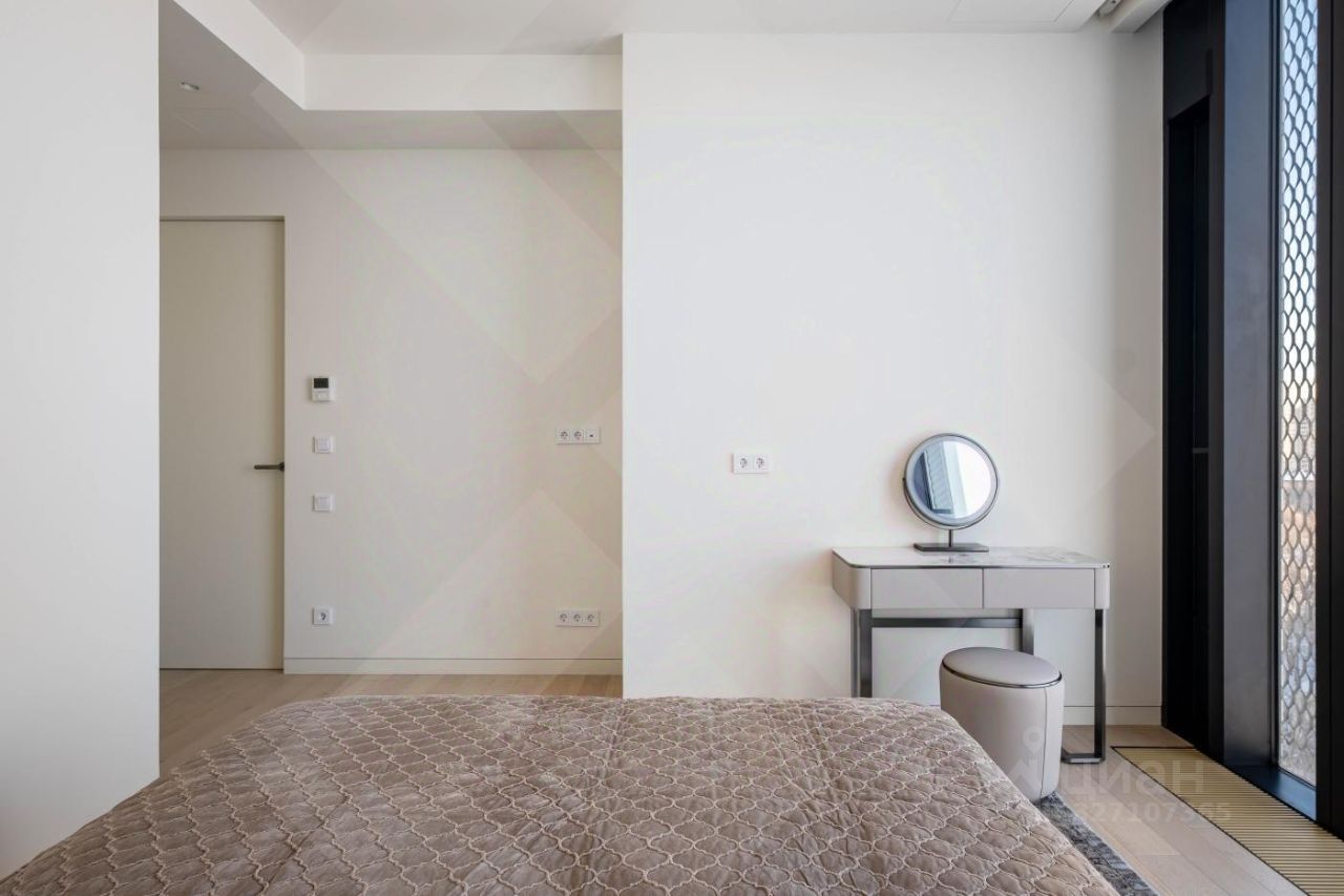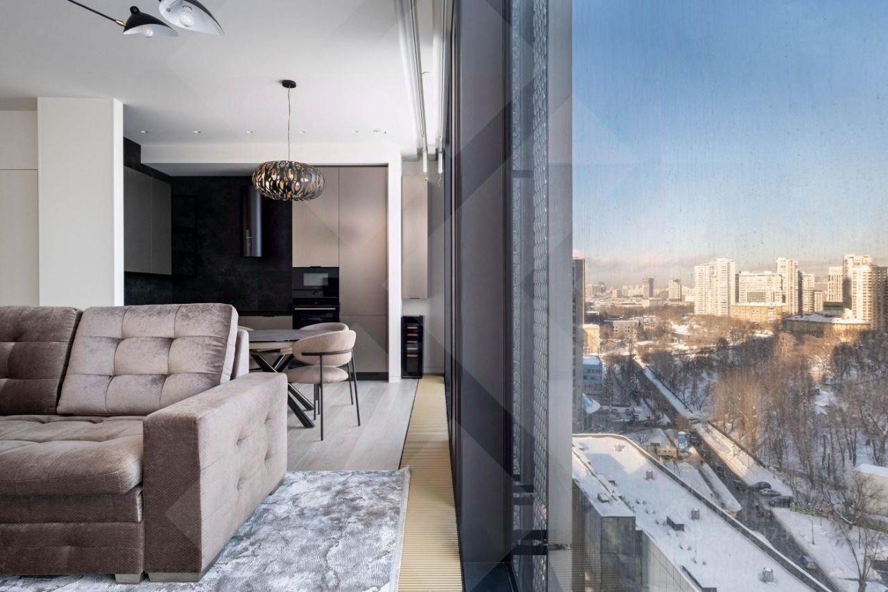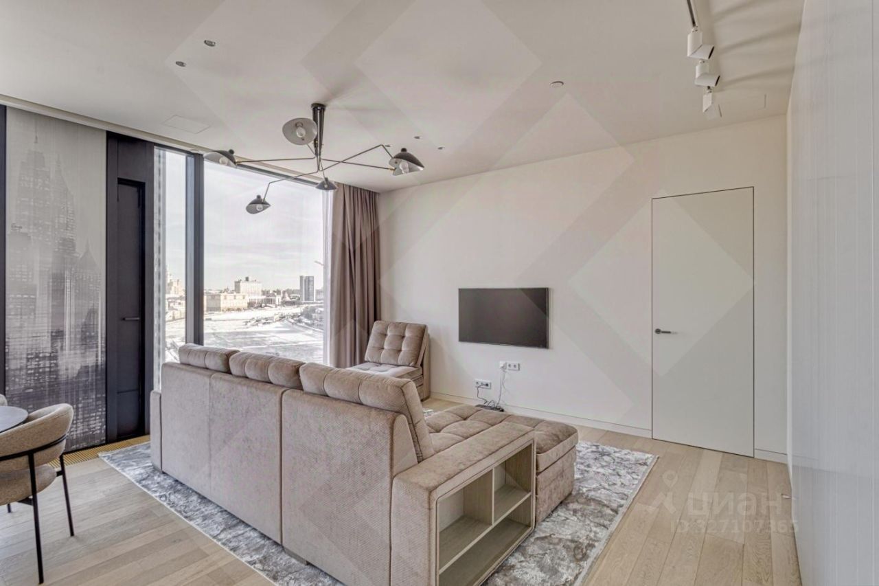 Роскошная двухкомнатная квартира в аренду в ЖК Capital Towers: персонализированный дизайн, премиумматериалы и панорамные виды на парк и реку - всего в 5 минутах ходьбы от МоскваСити. Продуманная планировка и отделка: Кухнягостиная. Итальянский кухонный гарнитур с премиумбытовой техникой (сенсорное управление, ЖКэкраны) и электрическим винным шкафом. Кастомный раскладывающийся стол с отделкой камнем, стеклом и металлом. Гостиная зона. Диван и кресло фирмы ''Эстетика'' (стоимость комплекта - 1,5 млн руб.), ковёр премиумкласса, телевизор The Frame с плотным прилеганием к стене, полноразмерный встроенный шкаф с отделкой из шпона. Холл. Четырёхметровый встроенный зеркальный шкаф с кастомным наполнением от профессионального дизайнера интерьера. Спальная зона.