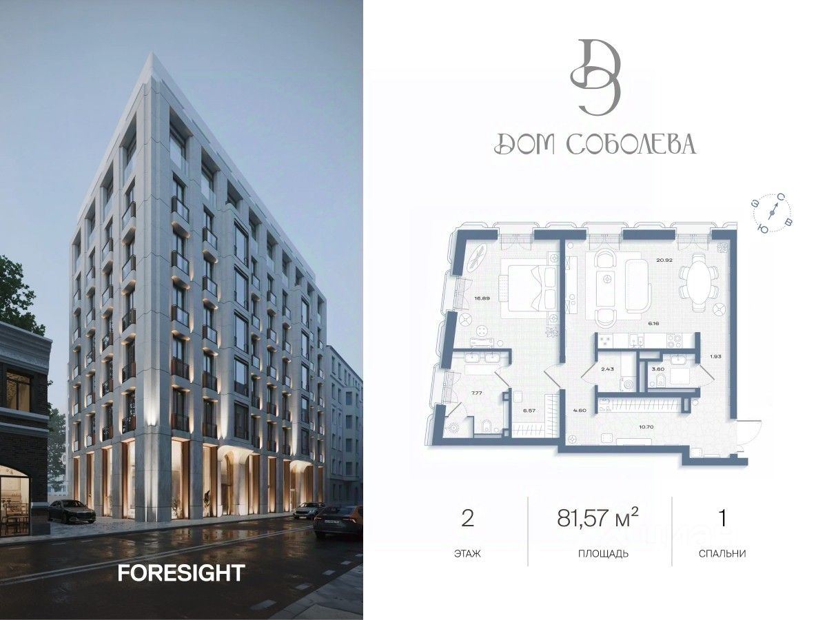 Продаётся 1-комнатная квартира в строящемся доме (Корпус 1), срок сдачи: II-кв. 2028, общей площадью 81.57 кв.м., на 2 этаже. ''Дом Соболева'' - это камерный жилой комплекс класса deluxe, расположенный на тихой и уютной улице Машкова в самом сердце Москвы. Проект создавался с особой тщательностью, чтобы предоставить своим жителям уникальное пространство для жизни, в котором сочетаются эстетика архитектурного наследия и современные стандарты комфорта. Разработанный архитектурным бюро NOWADAYS, Дом воплощает современное прочтение стиля модерн, изысканно вписанного в историческую ткань района.