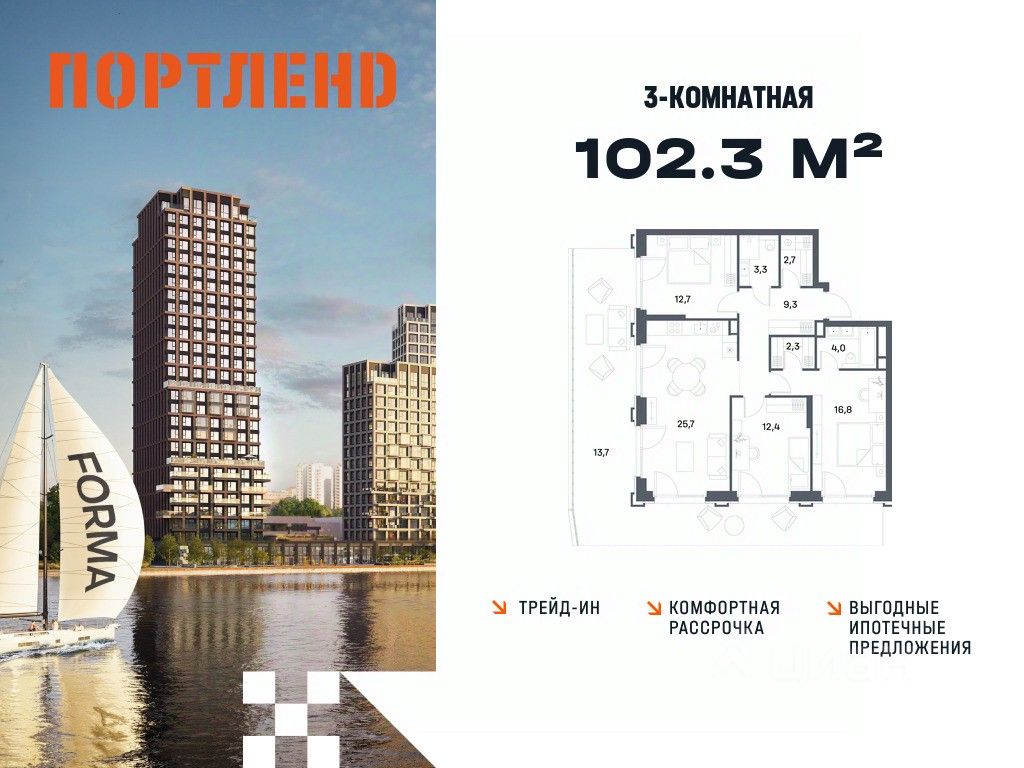 Продаётся 3-к. квартира, 2 этаж в жилом комплексе бизнес-класса ПОРТЛЕНД от девелопера FORMA. ЖК расположен на берегу Москвы-реки в северной части района Печатники в акватории Южного речного порта. Основные преимущества проекта: • Самая протяженная береговая линия реки в Москве 13 км. • Вид на реку в сторону запада панорамные окна на самое широкое водное пространство Москва-реки (900 м) и на закат. • 95% квартир с видом на воду. • К ПОРТЛЕНД не примыкает крупных автомагистралей - отсутствие фонового шума дорог. • В перспективе ближайших 11 лет на территории района запланировано грандиозное преобразование и комплексное развитие. • Собственная набережная длиной 412 м.