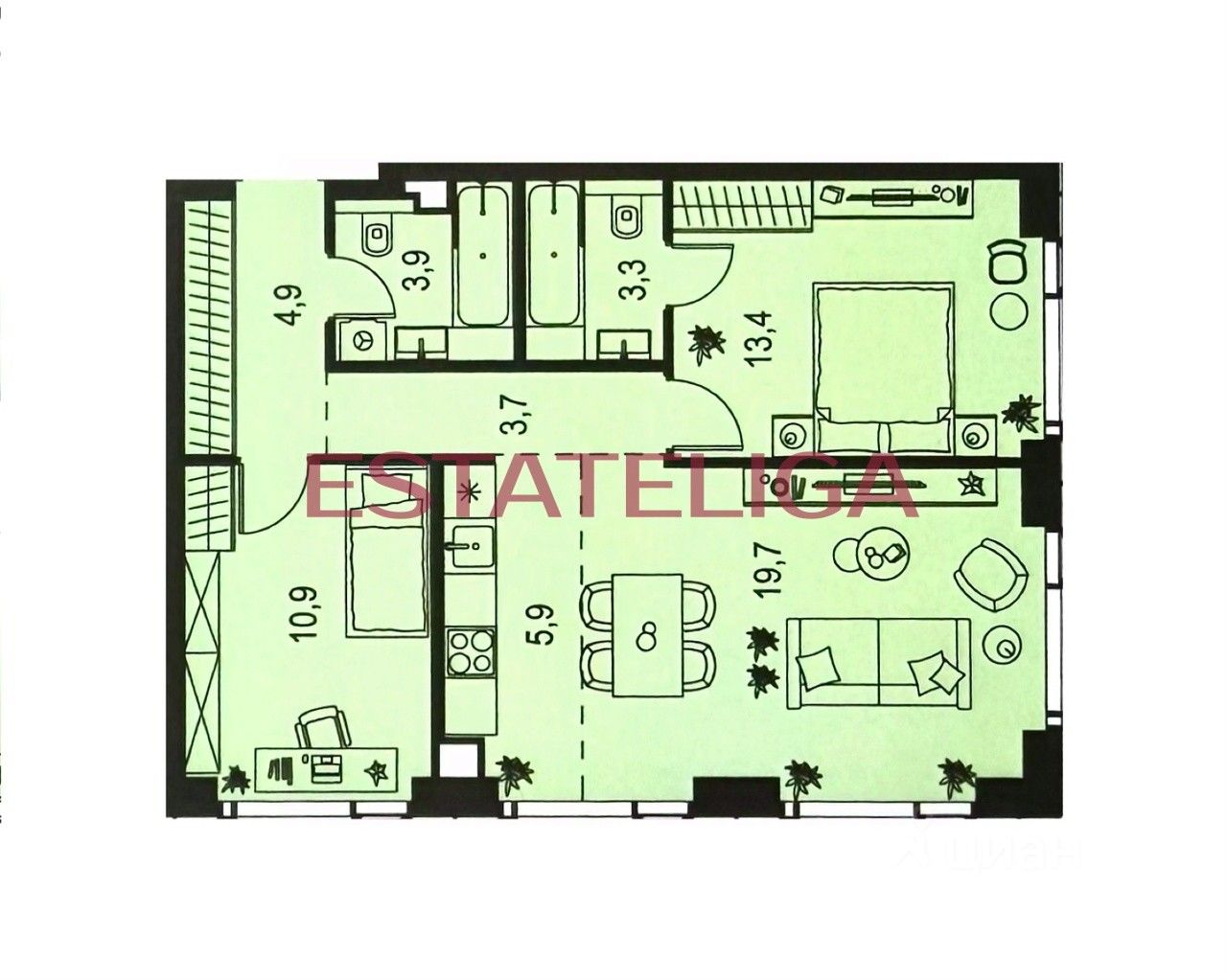 О квартире: Планировка включает в себя: кухню и гостиную, которую можно совместить и получится большая зона отдыха для всей семьи. 1 изолированная комната - детская или кабинет, изолированная мастер - спальня с санузлом и 1 гостевой санузел при входе в квартиру.