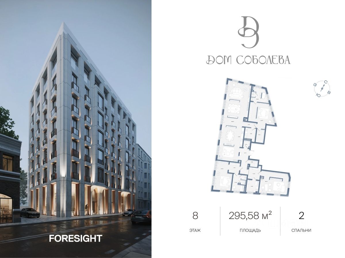 Продаётся 2-комнатная квартира в строящемся доме (Корпус 2), срок сдачи: II-кв. 2028, общей площадью 295.58 кв.м., на 8 этаже. ''Дом Соболева'' - это камерный жилой комплекс класса deluxe, расположенный на тихой и уютной улице Машкова в самом сердце Москвы. Проект создавался с особой тщательностью, чтобы предоставить своим жителям уникальное пространство для жизни, в котором сочетаются эстетика архитектурного наследия и современные стандарты комфорта. Разработанный архитектурным бюро NOWADAYS, Дом воплощает современное прочтение стиля модерн, изысканно вписанного в историческую ткань района.
