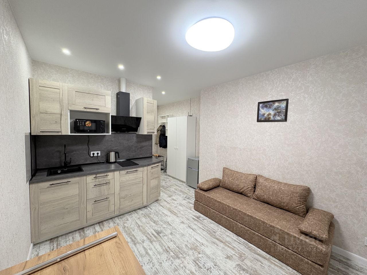 Сдаётся студия с дизайнерским ремонтом в монолитном доме 2025 года постройки. Жилой комплекс расположен в пешей доступности от метро Прокшино. Рядом развитая инфраструктура, есть прогулочная зона с прудом. До центра Москвы 35мин на метро. В квартире предусмотрены все удобства для комфортного проживания. кухня оборудована современной техникой, включая холодильник и микроволновую печь. В гостиной зоне установлен удобный диван и шкаф для хранения вещей.