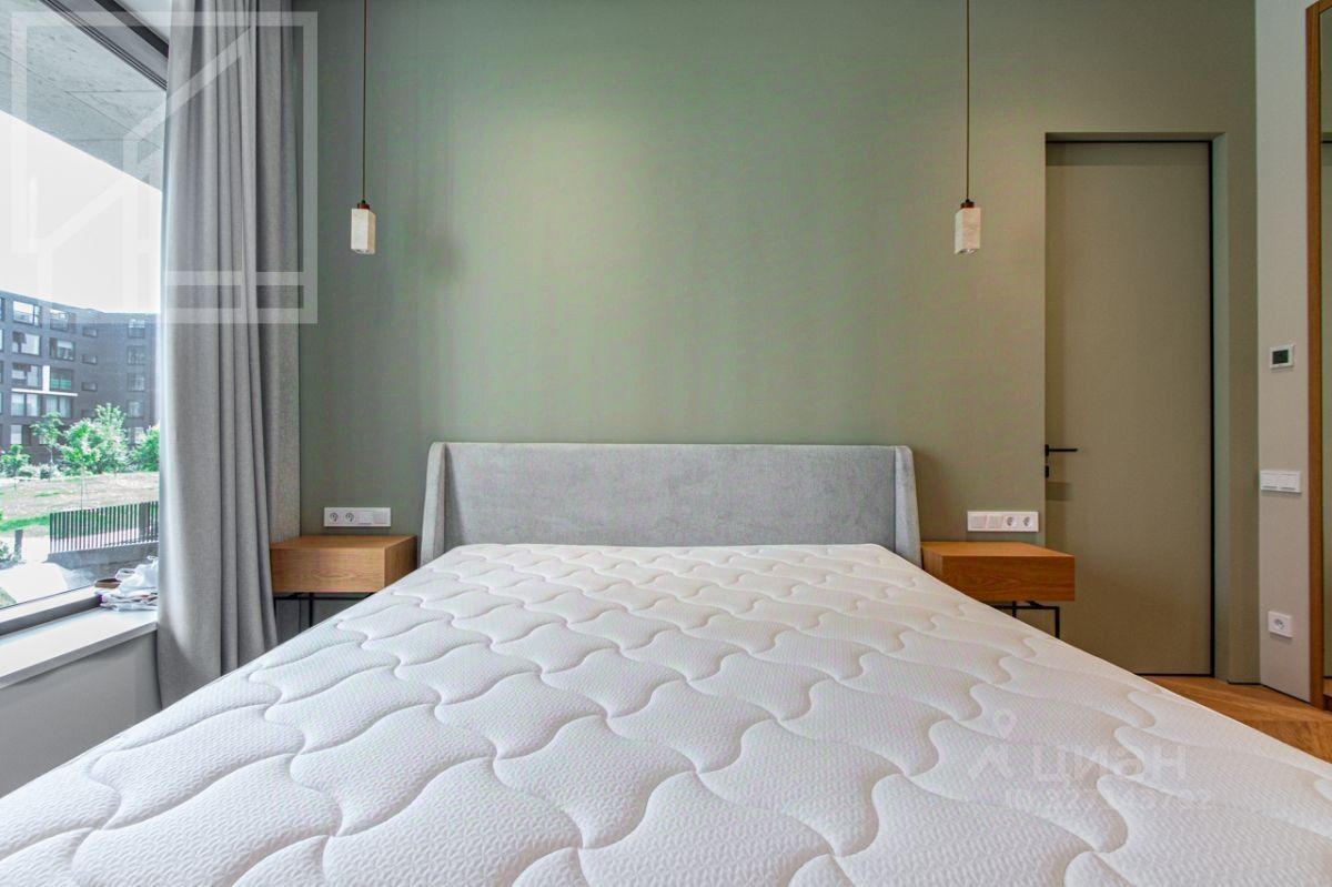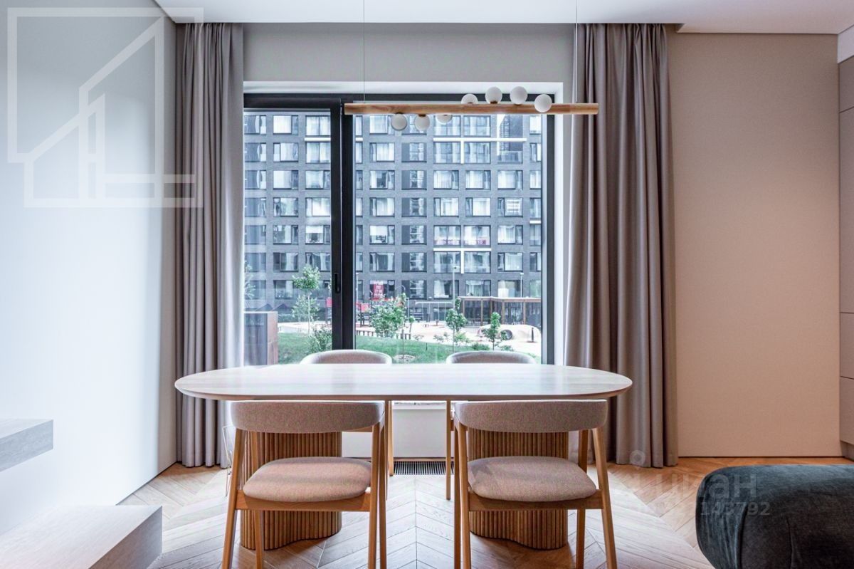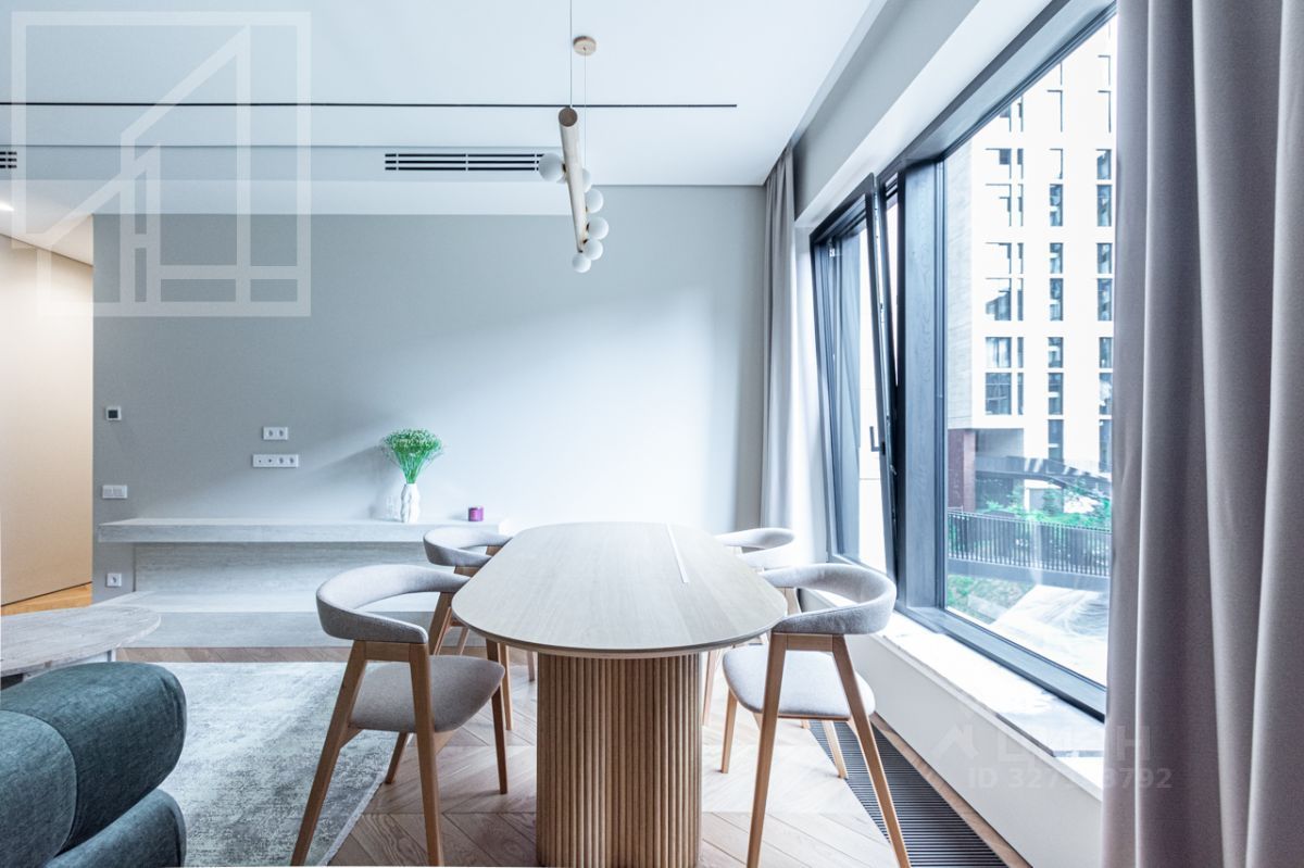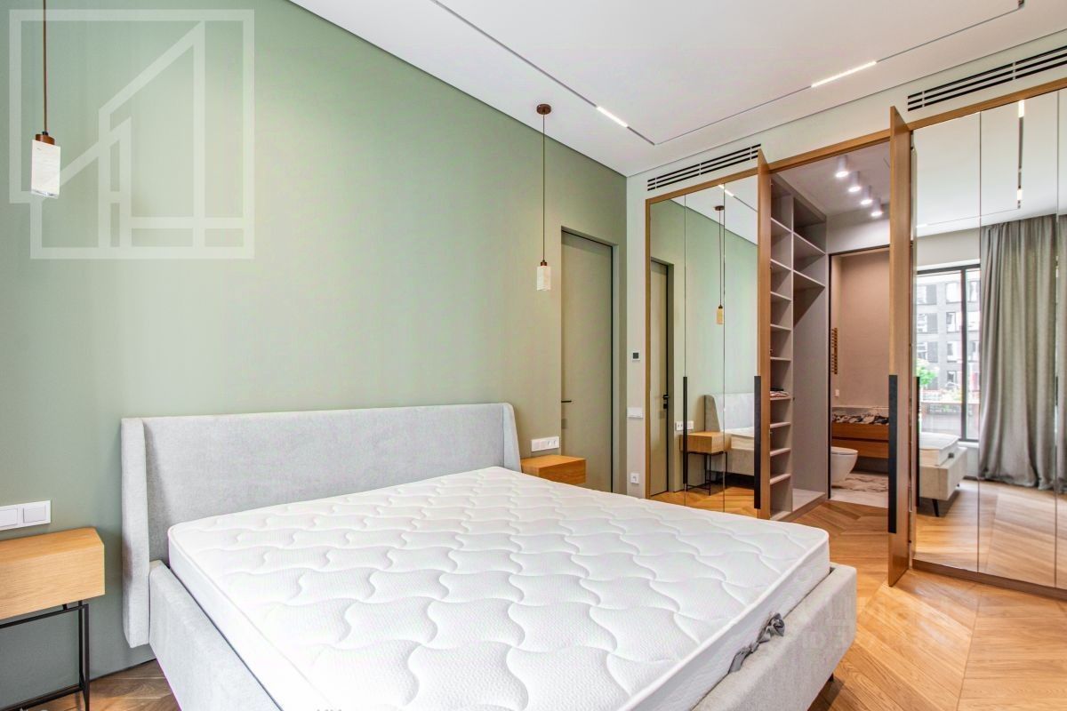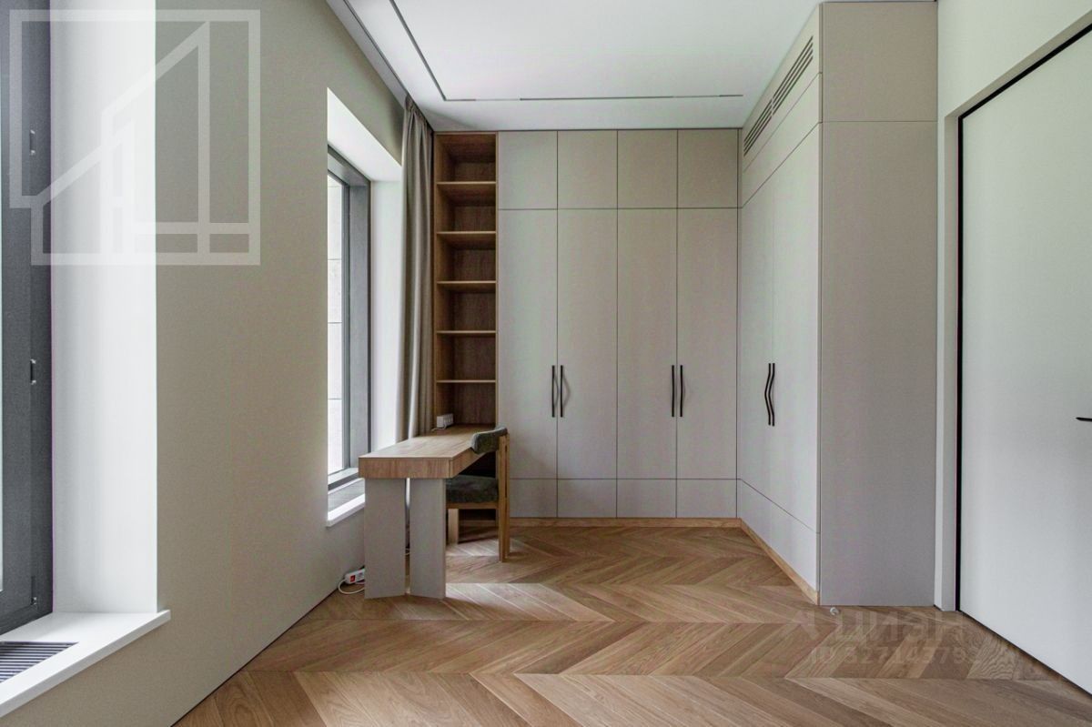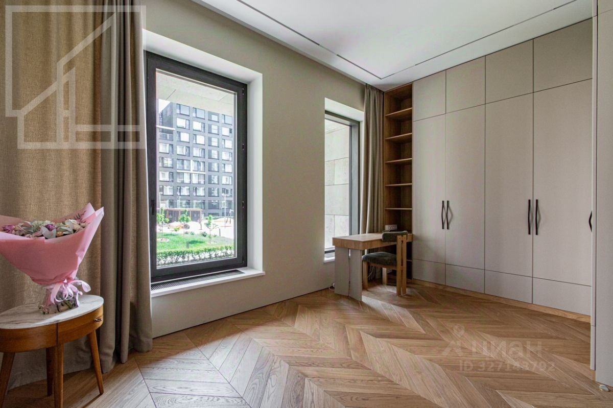 Планировка: гостиная с зоной кухни, мастер-спальня с гардеробной и ванной комнатой, кабинет, душевая комната, гардеробная при входе. Выполнена новая отделка в современном стиле с применением натуральных материалов. Квартира полностью меблирована и оборудована всей необходимой бытовой техникой. Высота потолка 3,2 м. Окна выходят в тихий двор. Мебель в кабинет докупают по запросу. Можно сделать из кабинета вторую спальню.
