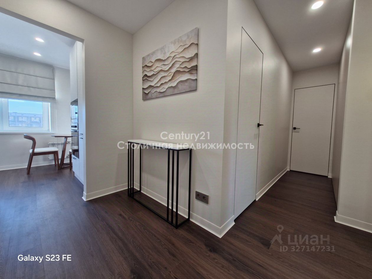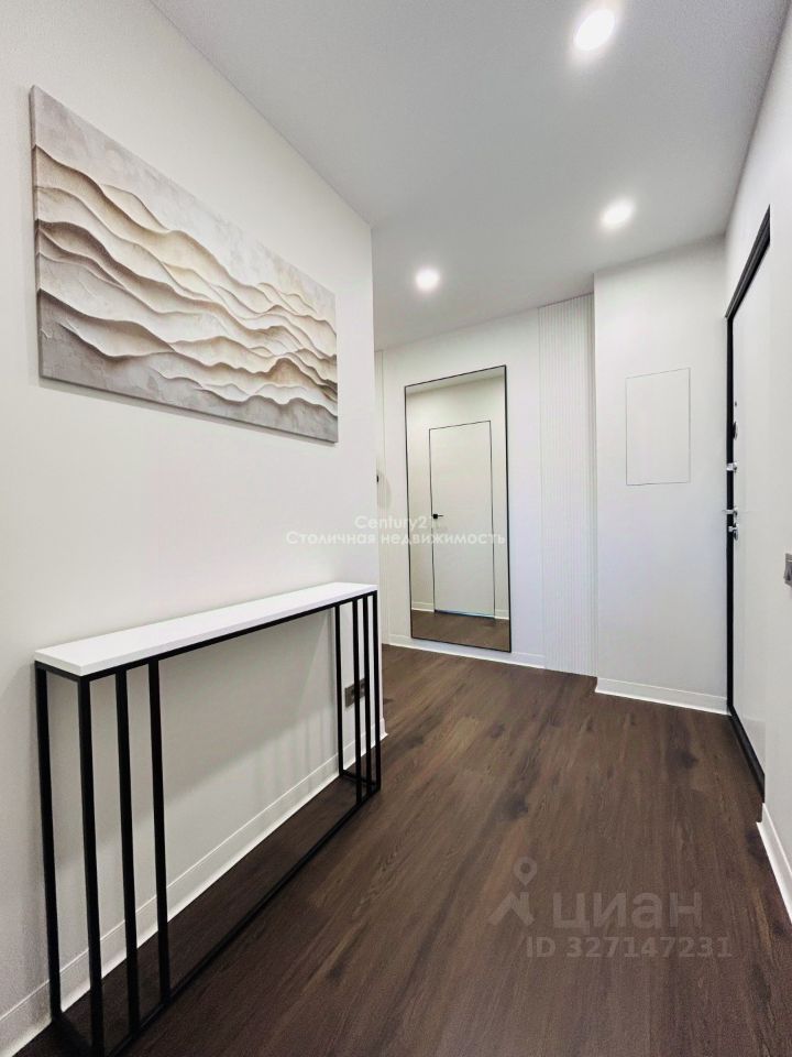 Квартира оснащена застекленным балконом, откуда открывается прекрасный вид. В коридоре располагается большой шкаф для хранения вещей, консольный столик и большое ростовое зеркало.