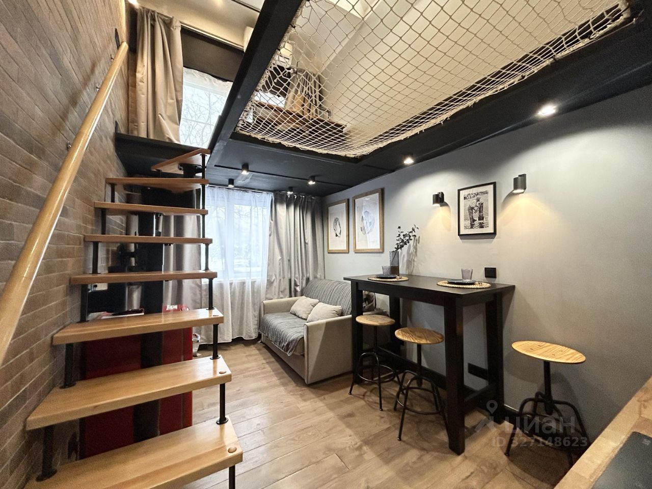 ПРОДАЮ двухуровневый апартамент с полноценным вторым этажом. Высота второго этажа 2,3 метра. Пространство квартиры продумано до мелочей. Есть кухня с зоной отдыха на первом этаже. Диван раскладывается по типу кровати, с хорошим матрасом. На втором этаже есть место для работы около окна и место для отдыха, в глубине комнаты. Там же расположен встроенный шкаф.