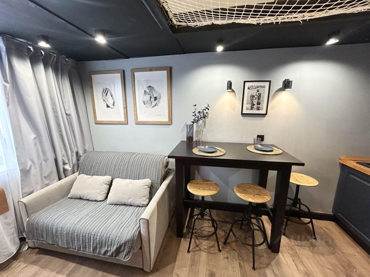 В апартаменте выполнен дизайнерский ремонт с использованием качественных материалов. Много разного освещения.