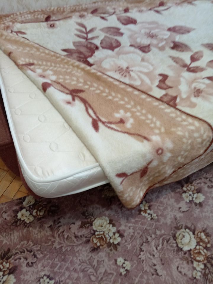 В комнате есть личный холодильник, диван с матрасом, стенка, стол.