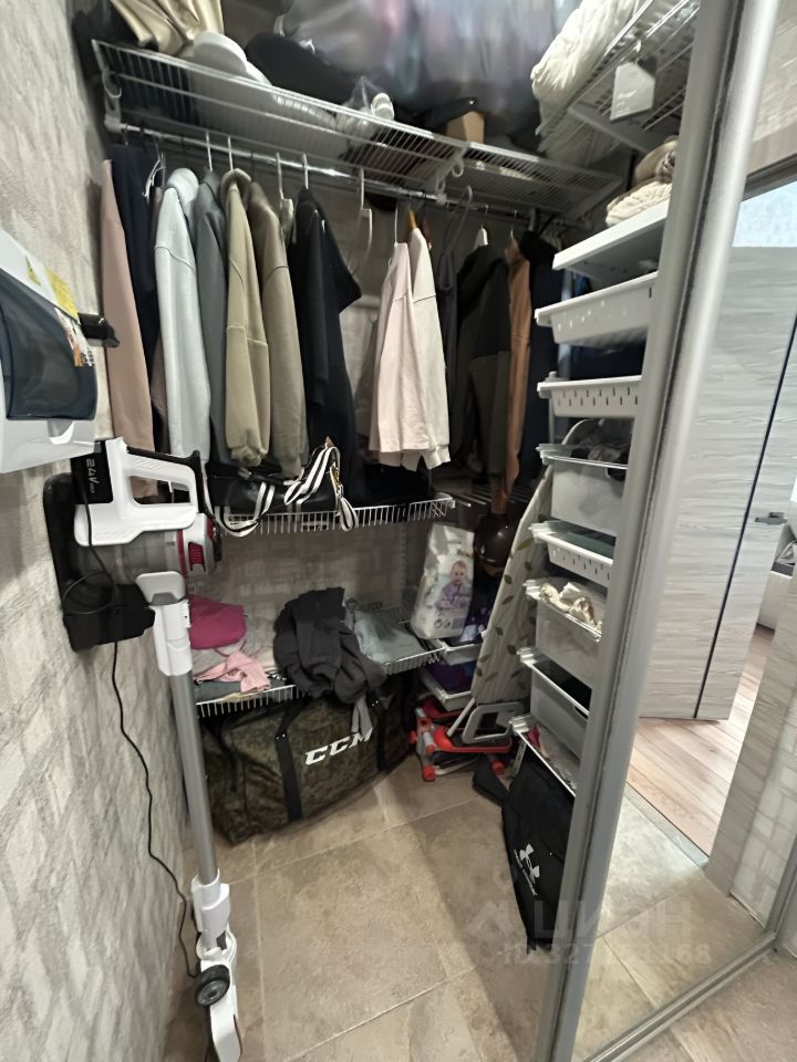 Так же в квартире есть большая гардеробная, в комнате комод и двухспальный диван.