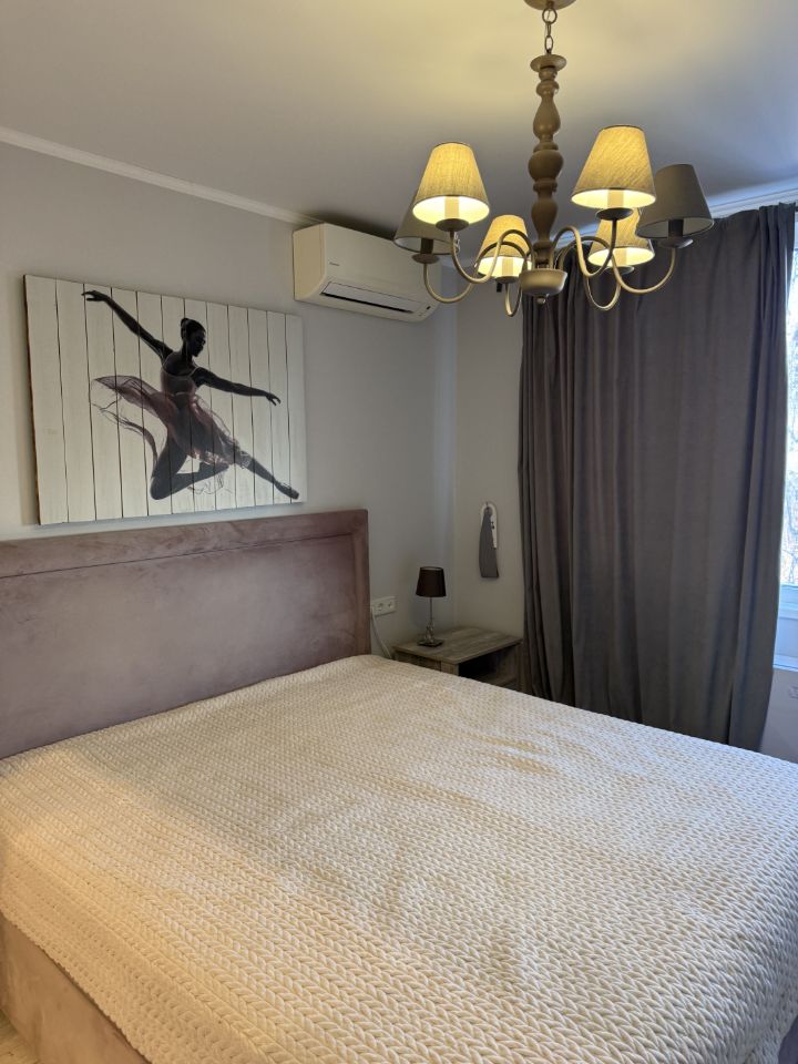 Юлия. квартира с евроремонтом, большой санузел, две изолированные комнаты с гардеробной. Вход в кухню через гостиную. Бойлер, кондиционеры. Большой шкаф в коридоре. Светлая, уютная квартира. У собственника есть пожелания к жильцам. Строго без животных.