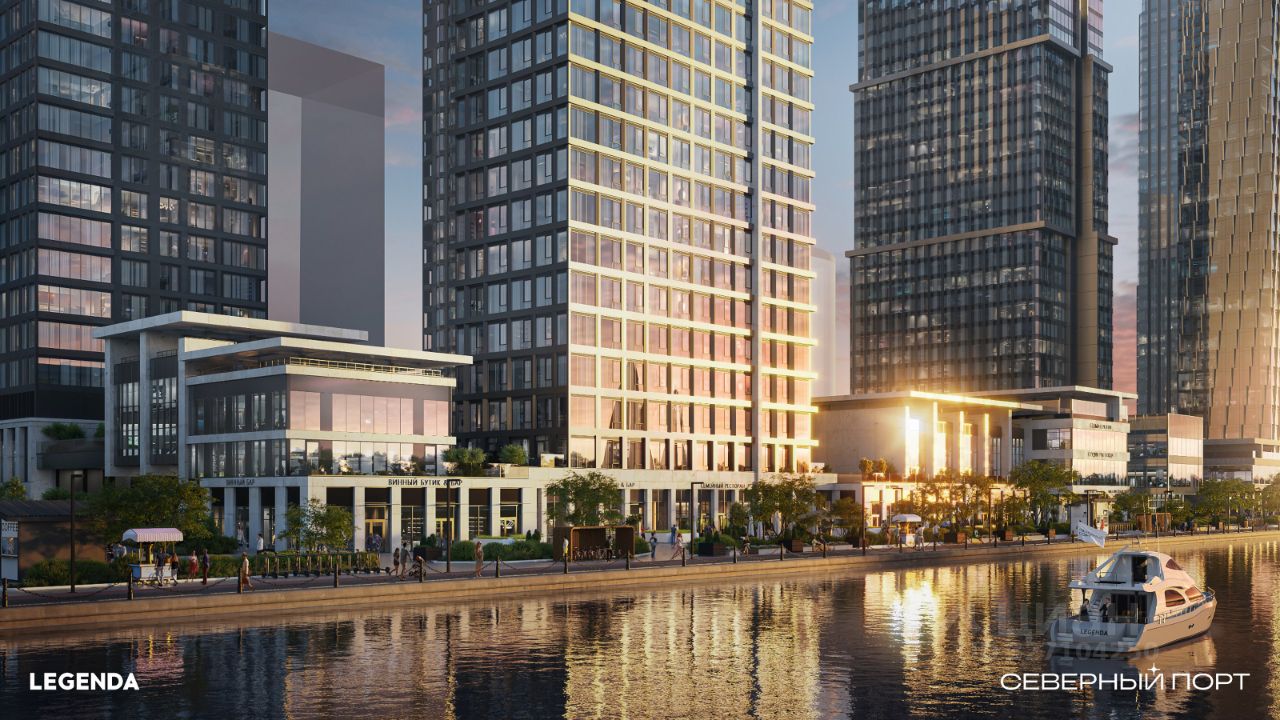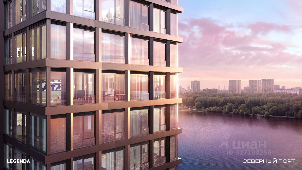 ЖК бизнес-класса Северный Порт от застройщика LEGENDA, расположенный на первой береговой линии, с шикарным видом на воду и парк. Панорама на акваторию, Северный речной вокзал, Парк Дружбы, Левобережный пляж, зелёный массив Северного Тушина.