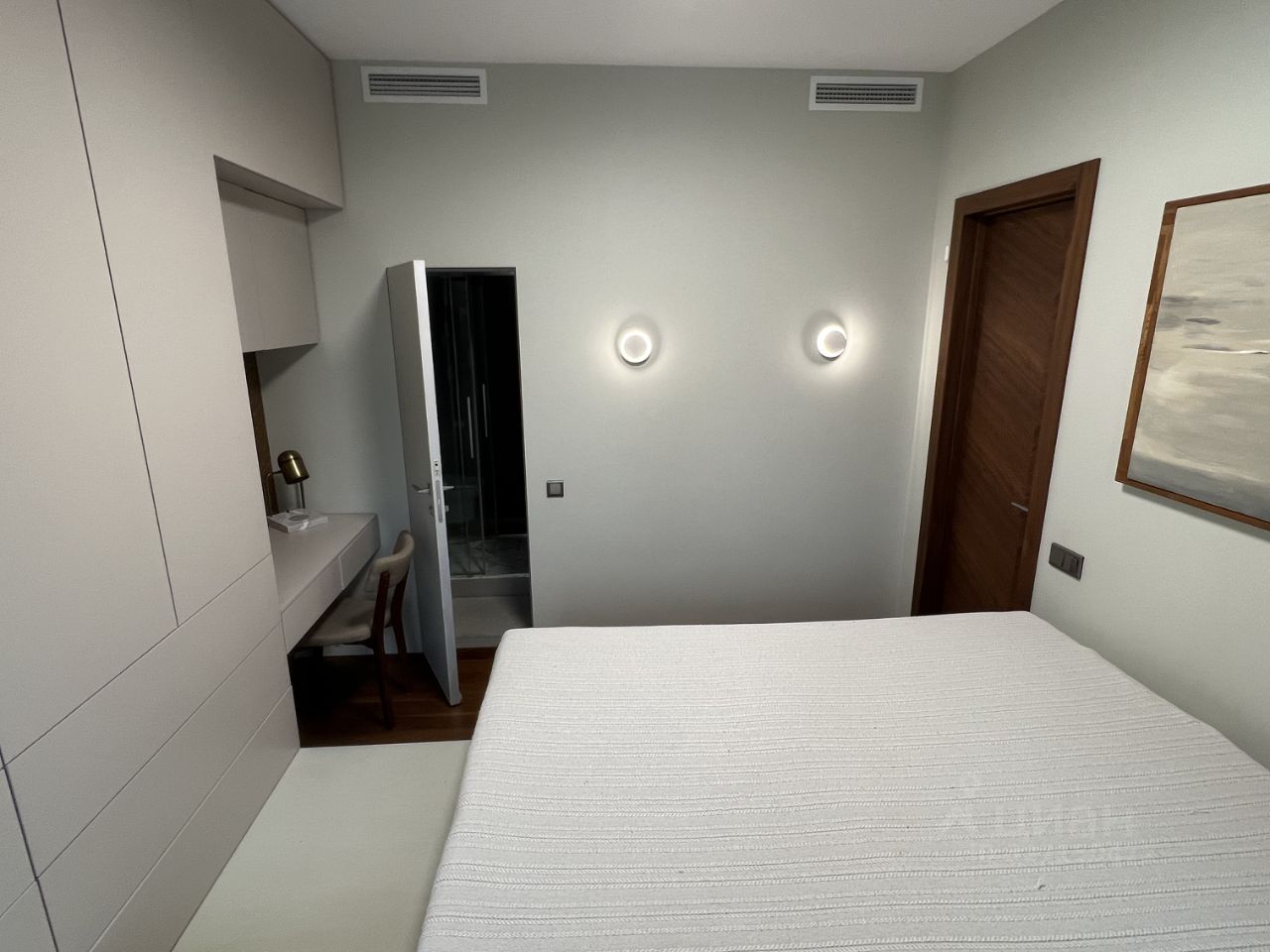 Три отдельные спальни, одна из которых мастер и две детские, просторная кухня/гостиная, много окон, пространства и света, один санузел с ванной, один с душем, много встроенных систем хранения. Канальная система кондиционирования во всех комнатах, полы с подогревом в санузлах, встроенная сушка для белья, продуманное хранение для раздельного сбора мусора.