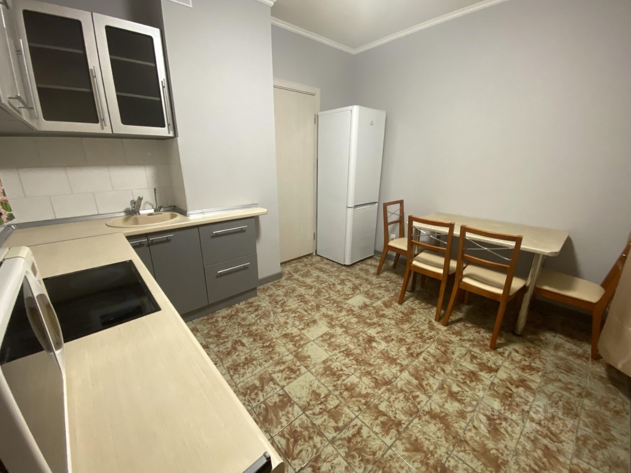 - Просторная со всей встроенной техникой (двухкамерный холодильник, микроволновка, плита).