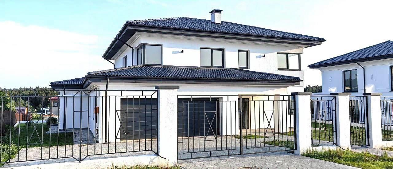 О ДОМЕ: Материал строительства - керамзитно-бетонные блоки, утеплитель 150 мм, облицован - штукатурка Фундамент - монолитная плита Перекрытия - монолитные плиты Кровля - натуральная черепица BRAAS Высота потолков - 3 м