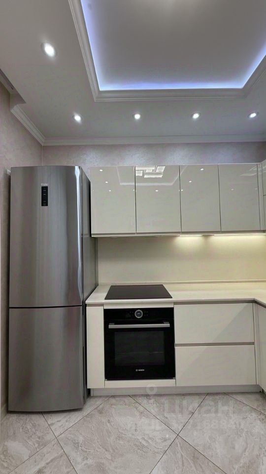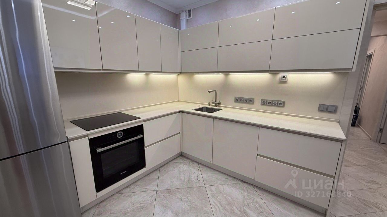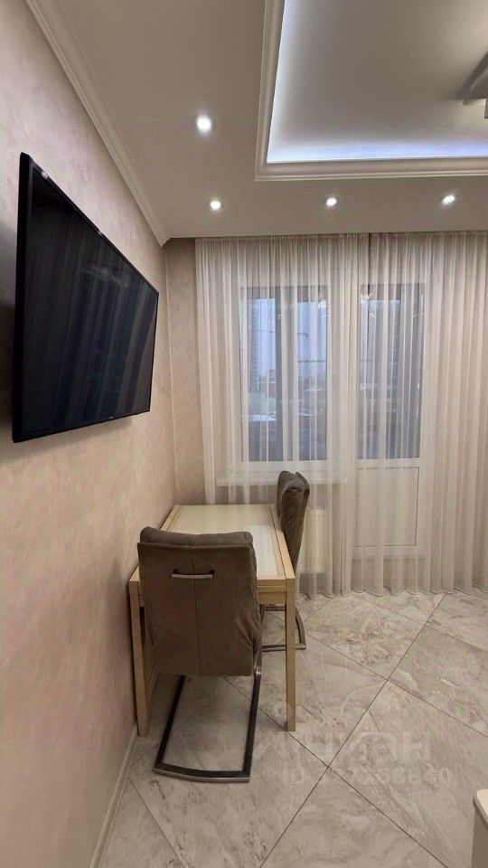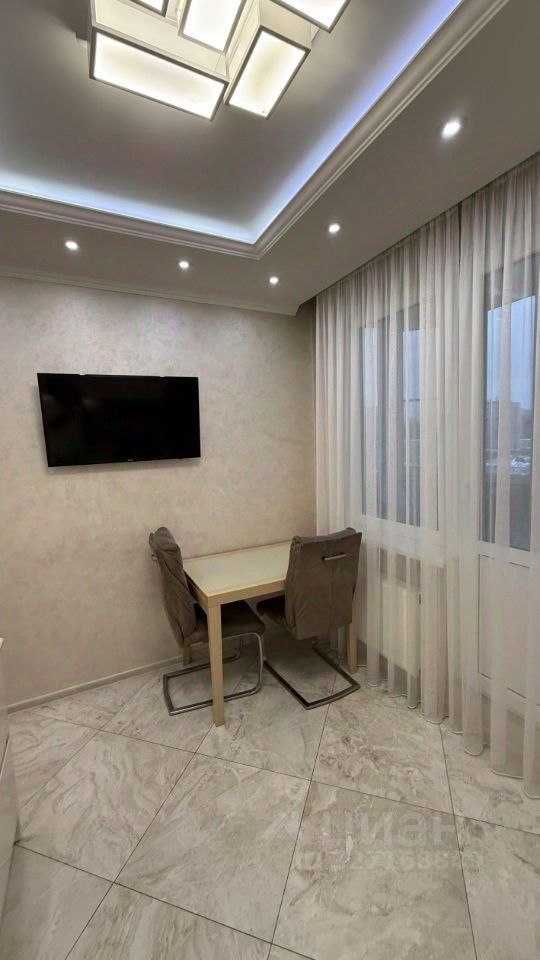 В квартире выполнен дизайнерский ремонт. Комнаты обставлены мебелью, на кухне удобно расположена вся необходимая мебель и техника: кондиционер, холодильник, посудомоечная машина, телевизор и стиральная машина. В ванной комнате установлена ванна. Из квартиры есть выход на лоджию и балкон, что добавляет пространство для отдыха.