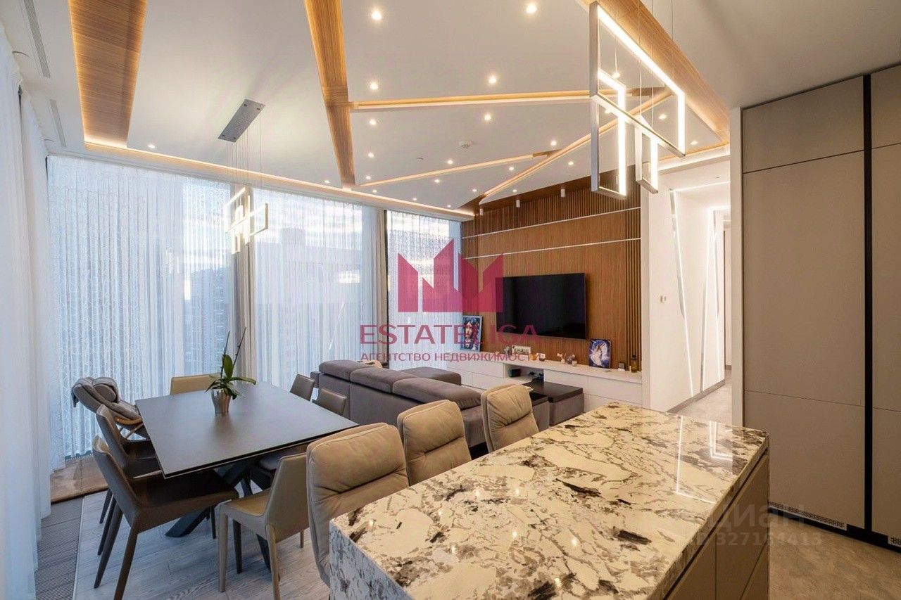 Новые трехкомнатные апартаменты с панорамным угловым застеклением в гостиной и спальне, общей площадью 94 кв м. Дизайнерский ремонт, мебель включена. Вид на Москва-сити, Башню Т1 Neva Towers и Шелепихинскую набережную. Функциональная планировка: просторная кухня-гостиная, изолированная спальня, 2 совмещенных санузла, постирочная зона и просторный холл.