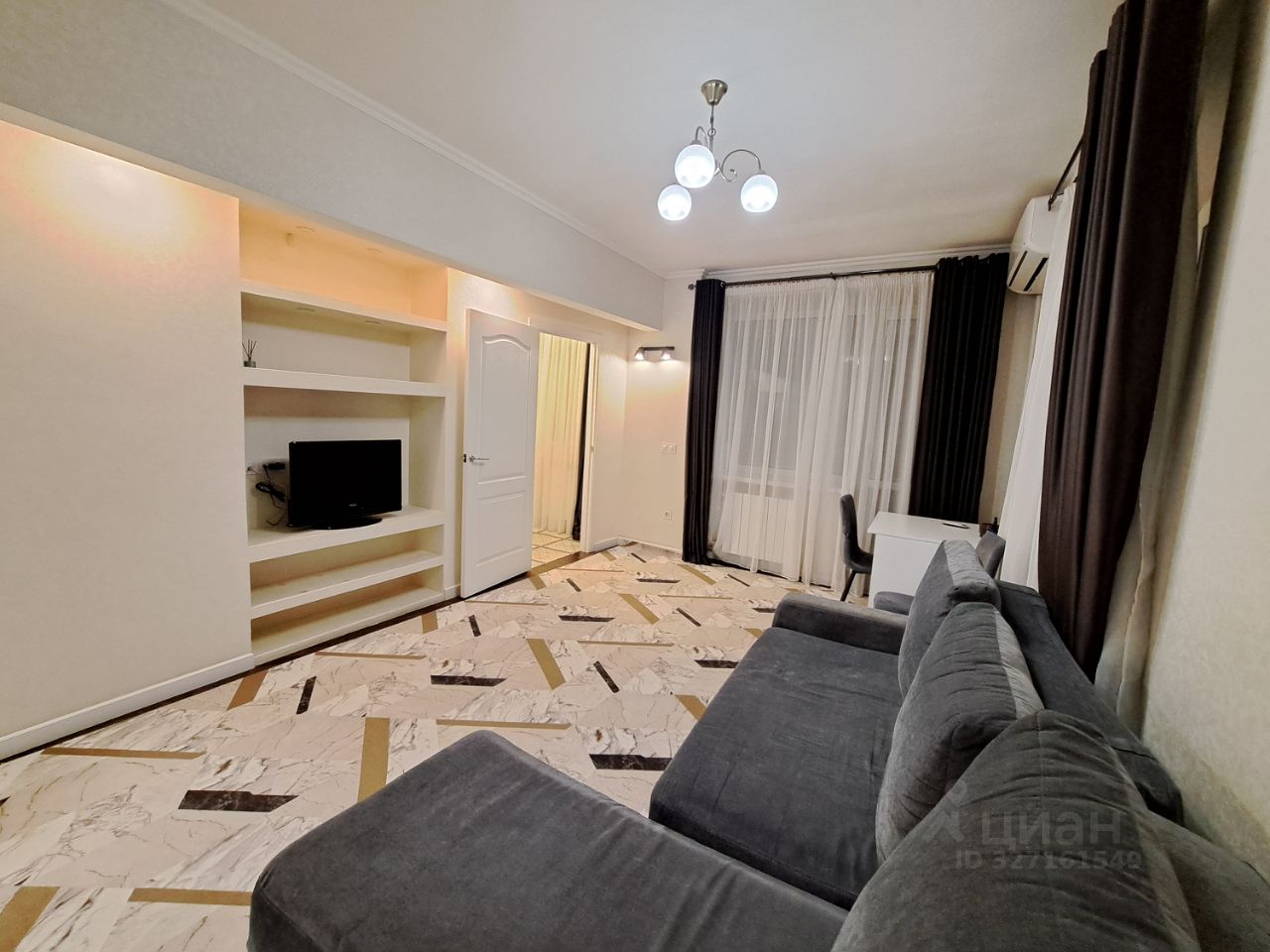 Много места для хранения (большой шкаф-купе), удобный диван-кровать, кондиционер, в санузле полноценная ванная.