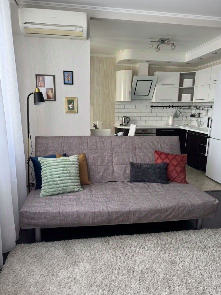 О КВАРТИРЕ: - Квартира полностью укомплектована всем необходимым для комфортного проживания: телевизор, посудомоечная машина, стиральная машина, кондиционер, микроволновка, духовой шкаф, индукционная плита, двуспальная кровать. - Просторная кухня-гостиная и 1 изолированная спальня. - Планировка квартиры позволяет комфортно использовать пространство и добавить свои элементы декора или мебели.