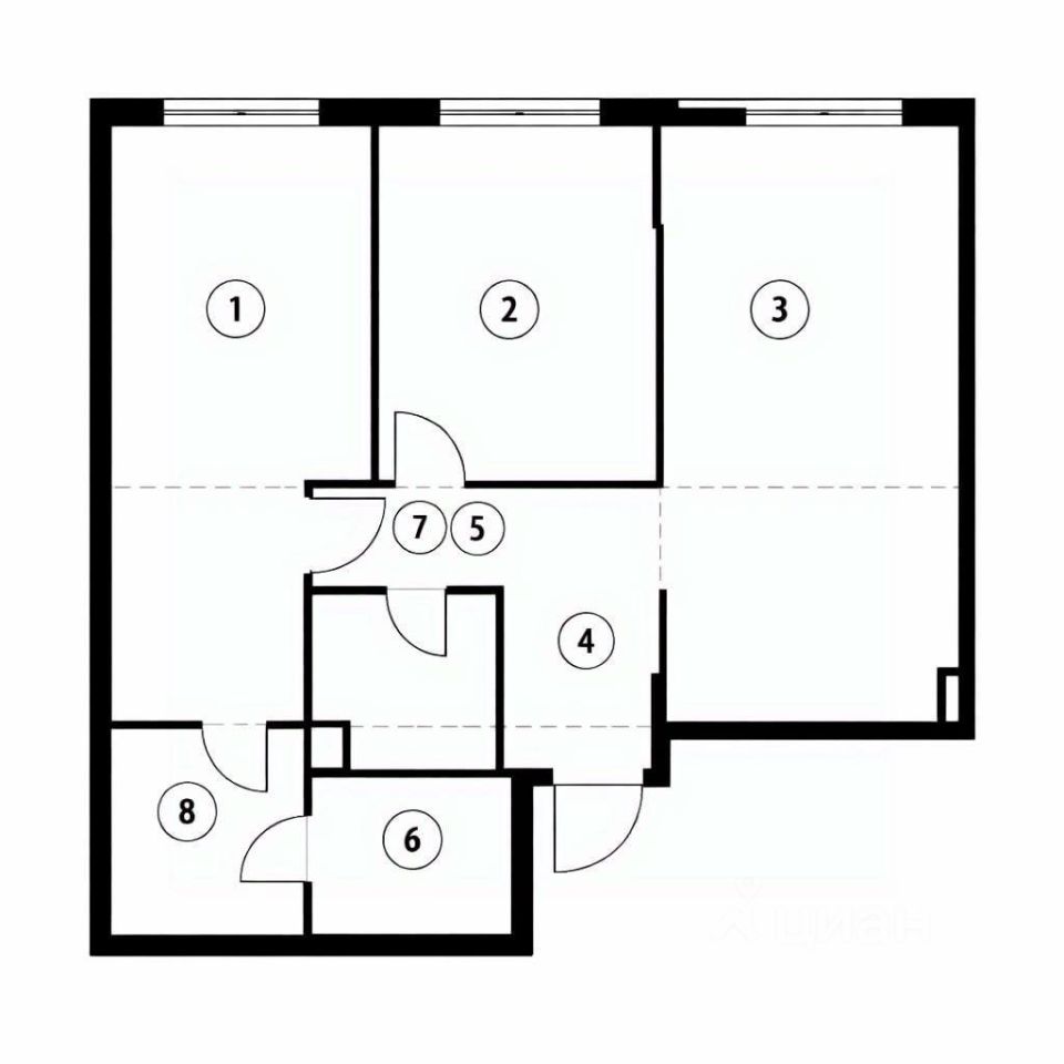 Характеристики квартиры: -Количество комнат: 2 (планировка евротрёшки). -Жилая площадь: 29,7 м -Площадь кухни: 22 м -Санузел: 2 совмещённых. -Вид из окон: на улицу. -Ремонт: без ремонта.