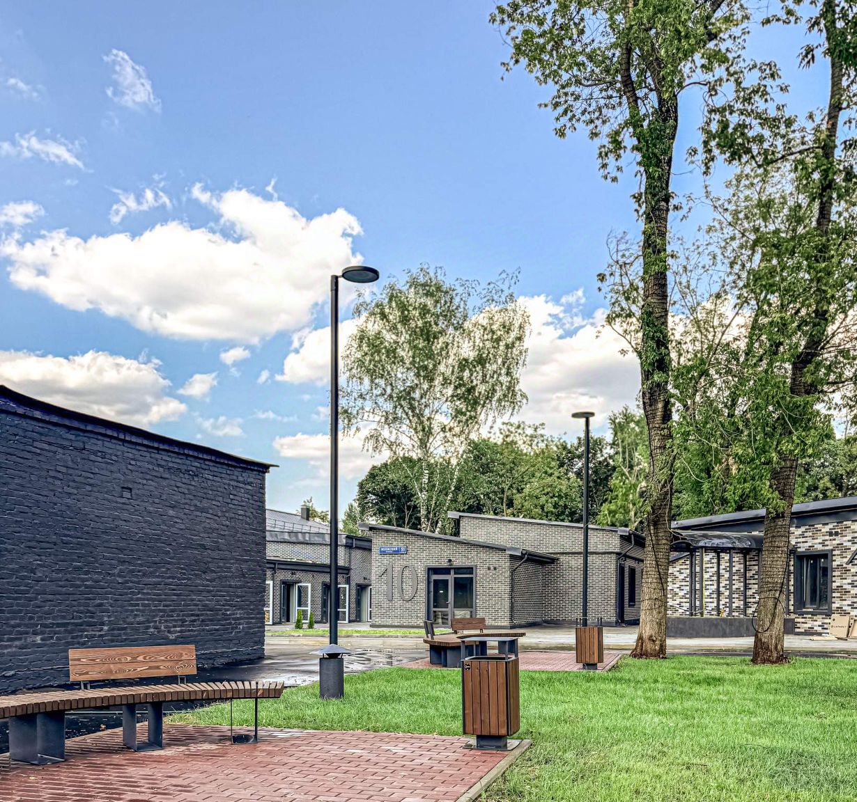 Здания на территории бизнес-парка представляют собой малоэтажную застройку из 19 строений, каждое из которых обладает своими уникальными характеристиками и планировочными решениями на любой запрос. Отделка фасадов выполнена панелями с имитацией клинкерного кирпича. Дополнительно на территории организованы зоны отдыха, также дополнительно имеется возможность для организации летних веранд и кафе. Оборудованы парковочные места для резидентов и их гостей.