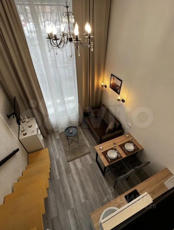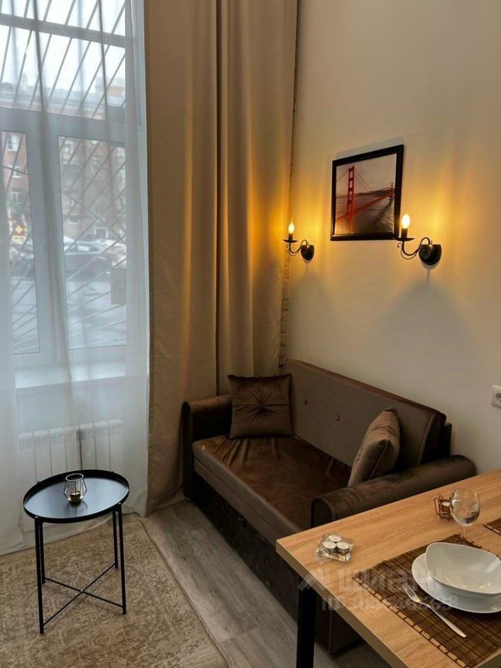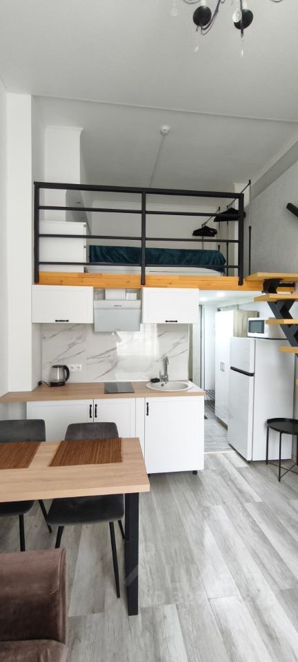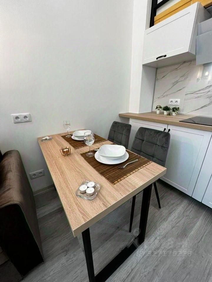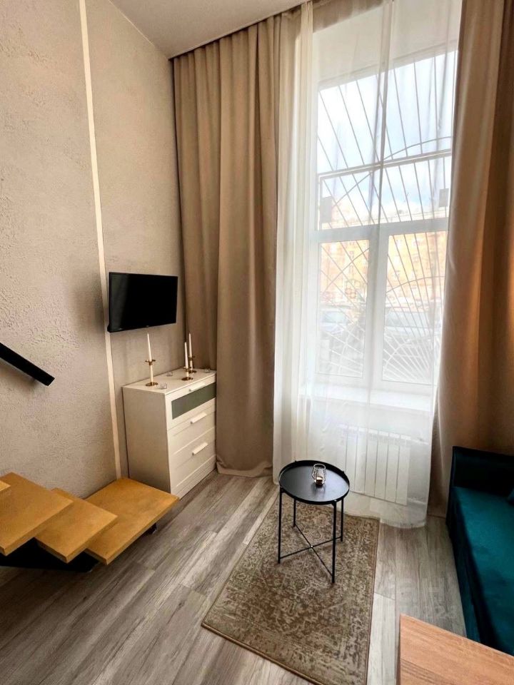 Сдается уютная студия с дизайнерским ремонтом, расположенная в пятиэтажном доме. Общая площадь — 24 кв. м, жилая — 18 кв. м, кухня — 5 кв. м. Апартаменты находятся на первом этаже, высота потолка - 4.3 метра, огромное панорамное окно с видом на зеленый двор. В квартире есть все необходимое для комфортного проживания: современная мебель на кухне и в комнате, холодильник, микроволновая печь, посуда, варочная панель, телевизор, WI-Fi и стиральная машина. Санузел совмещенный, оборудован душевой кабиной. Все готово к въезду.