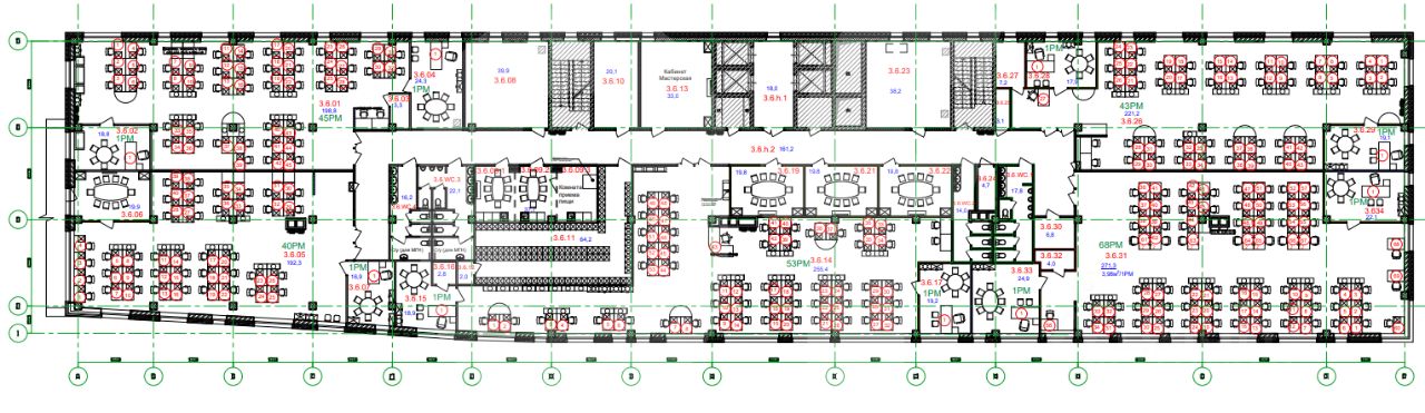 *Количество рабочих мест рассчитано автоматически: от 4,5 м2 на человека до 8 м2 на человека.