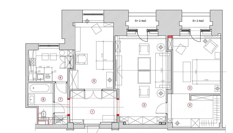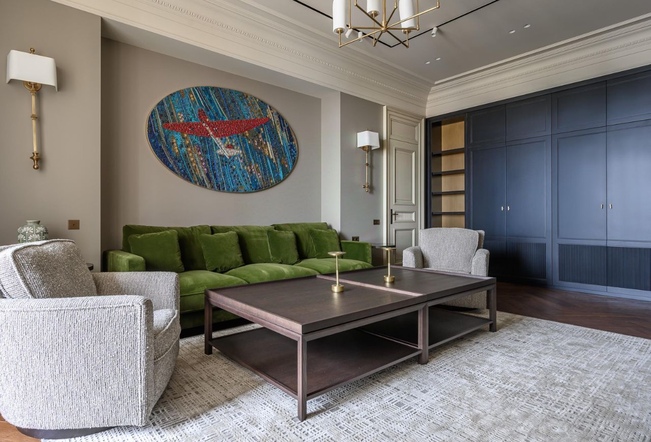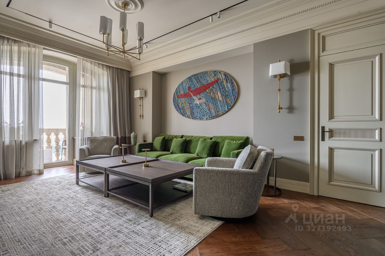 Мебель в гостиной и спальнях выполнена по индивидуальному дизайнпроекту Cierre и европейских фабрик. Квартира продаётся с мебелью, техникой, текстилем и частью аксессуаров — полностью укомплектованное пространство, готовое к проживанию.