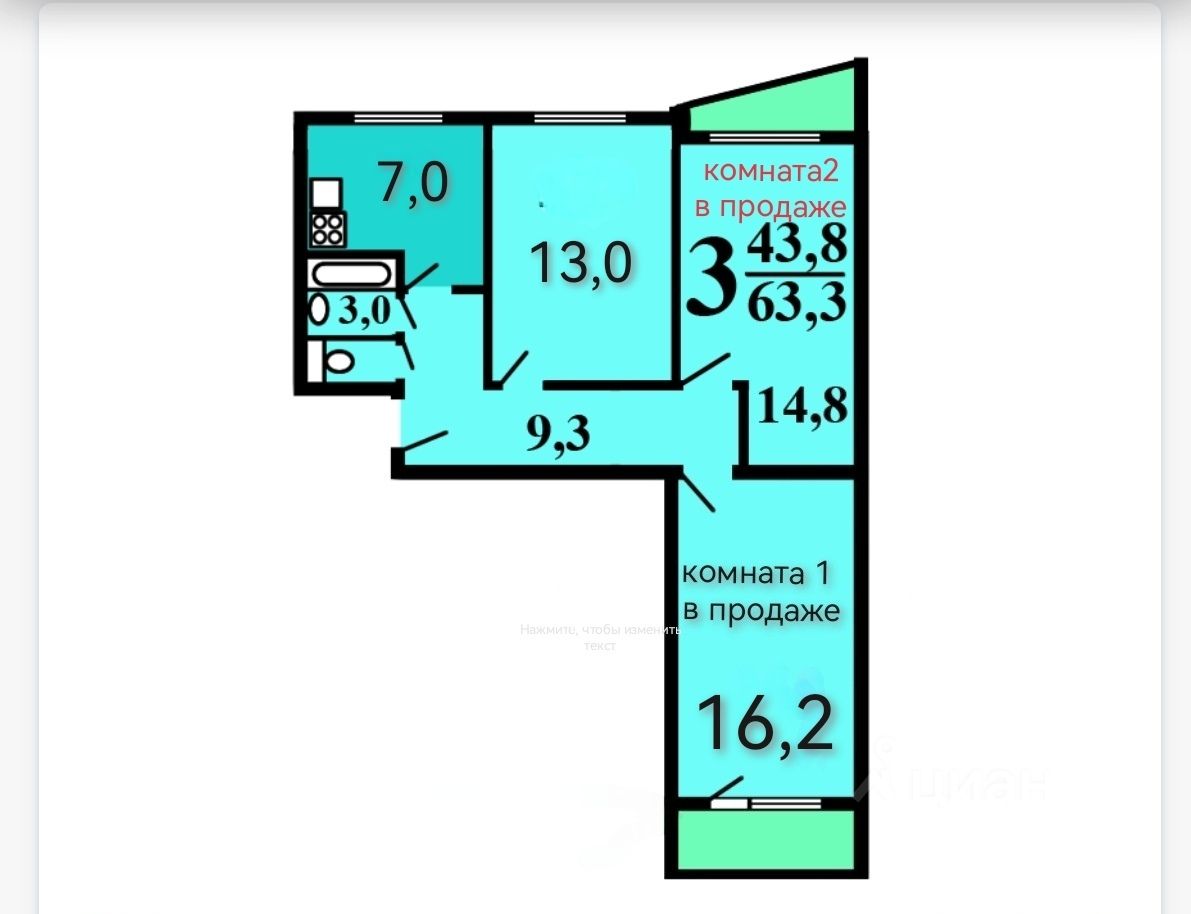 Комната 16,2 кв.м - 5 300 000 руб. Комната 14,8 кв.м - 4 900 000 руб. Цена за две комнаты 10 200 000 руб.