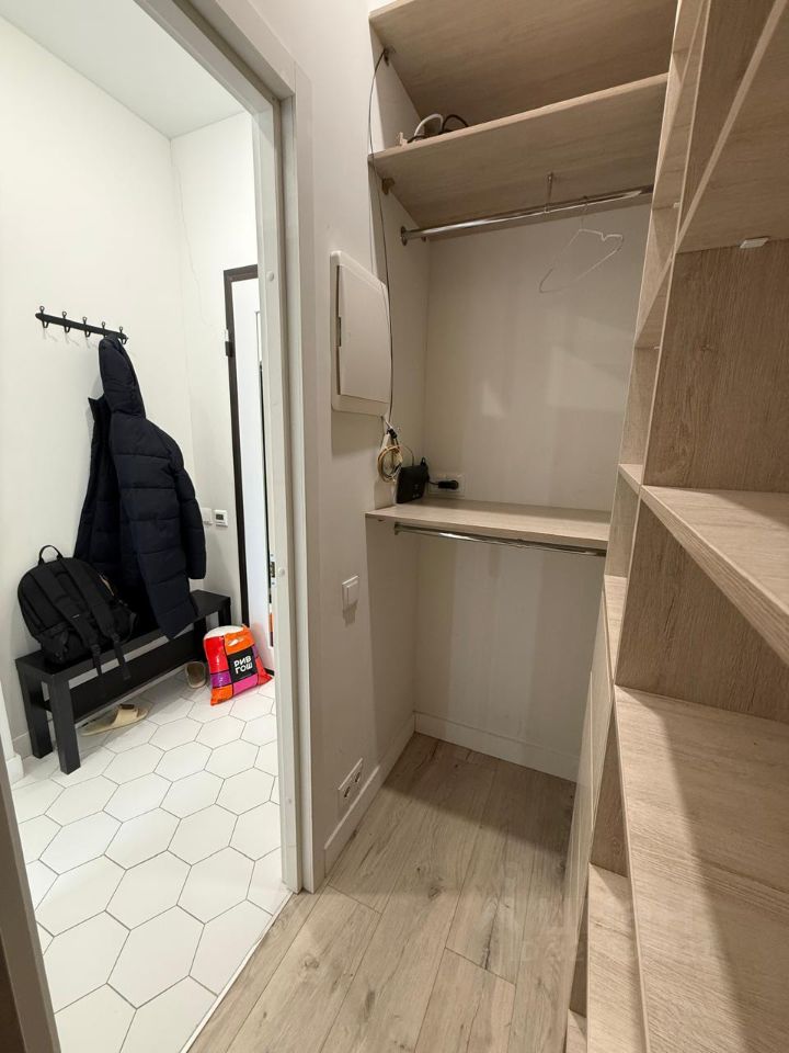 Сдается однокомнатная квартира в ЖК Царская площадь. Но планировочное решение студийного плана нет изолированной спальни. Всё это в силу двух гардеробных комнат, которые имеются в квартире. Квартира в хорошем состоянии. Планировка: - большая кухня, - спальное пространство с двуспальной кроватью, гардеробной комнатой и лоджией, - санузел совмещенный с душевой кабиной, - еще одна небольшая гардеробная комната при входе.