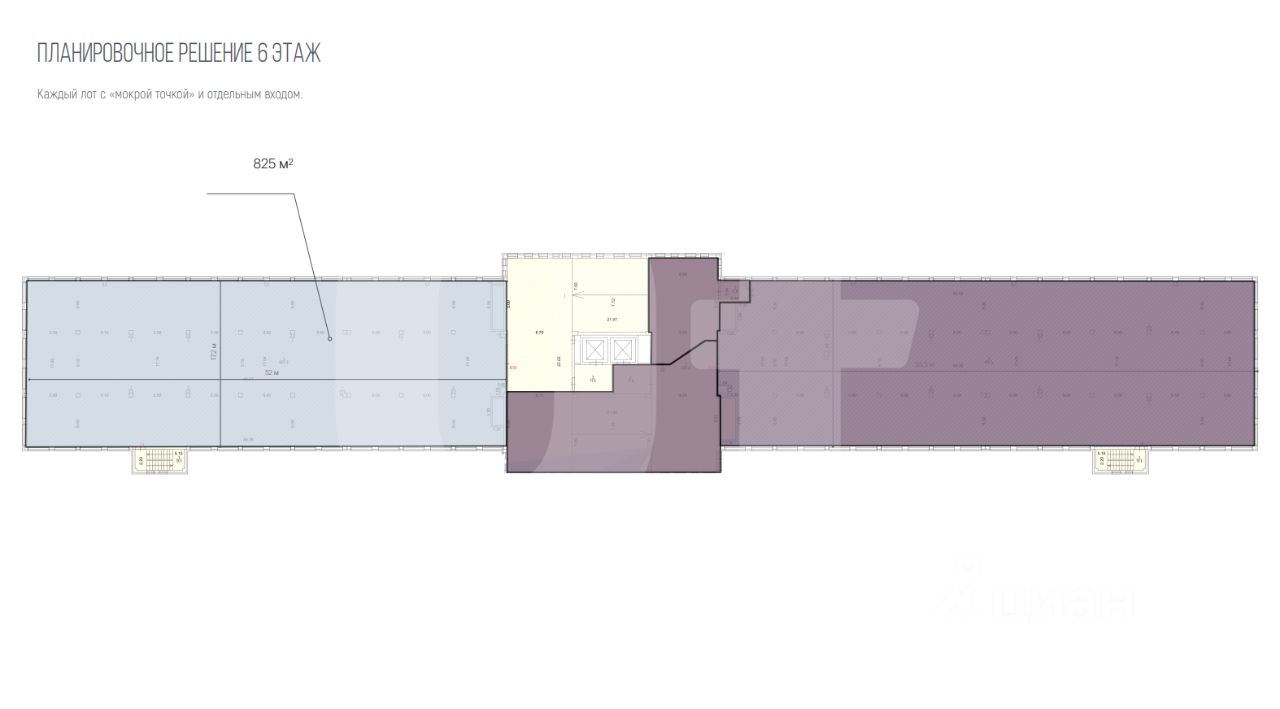 Ключевые преимущества: электрическая мощность 750 кВт, водоснабжение 50 м/час, грузовые лифты, автомобильная рампа до 6-го этажа и мокрая точка в каждом лоте. Высота потолков варьируется от 2,5 до 3 метров.