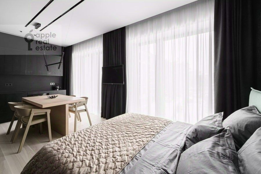 Светлая квартира студия в новом современном доме. Общая площадь - 33 кв.м. Потолки 3 м. Квартира располагается на 4/17 этаже. В лобби ресепшен. Подземный паркинг, машиноместо оплачивается отдельно. Современный ремонт с использованием высококачественных материалов и премиальной техники Miele. Квартира полностью обставлена мебелью и всей необходимой бытовой техникой, в наличии: посудомоечная машина, холодильник, приточно-вытяжная система вентиляции и кондиционирования, бойлер, душевая кабина, стиральная машина, подогрев полов, телевизор, высокоскоростной интернет. Окна выходят в тихий внутренний двор. Возможна аренда с домашними животными. Срок аренды - от одного года.