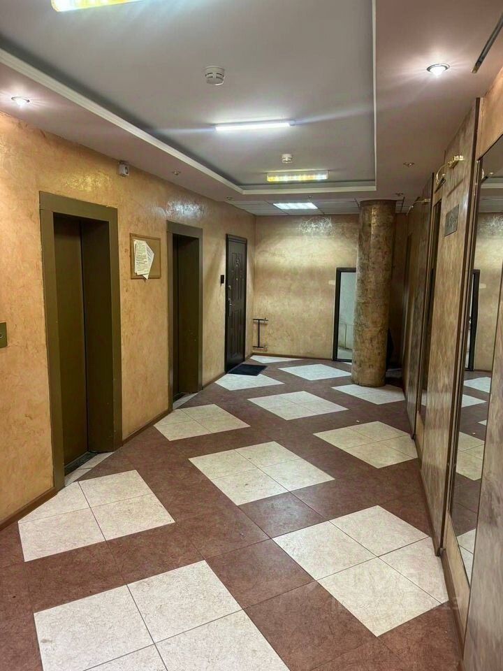 Квартира расположена на 13 этаже кирпичного дома с двумя пассажирскими и одним грузовым лифтом. Имеется подземная парковка за шлагбаумом во дворе.