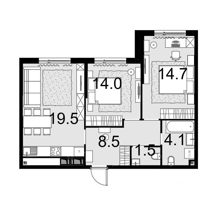 комната — 14,7 м