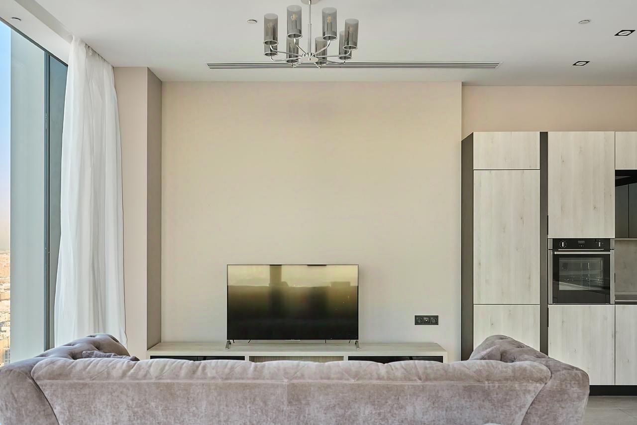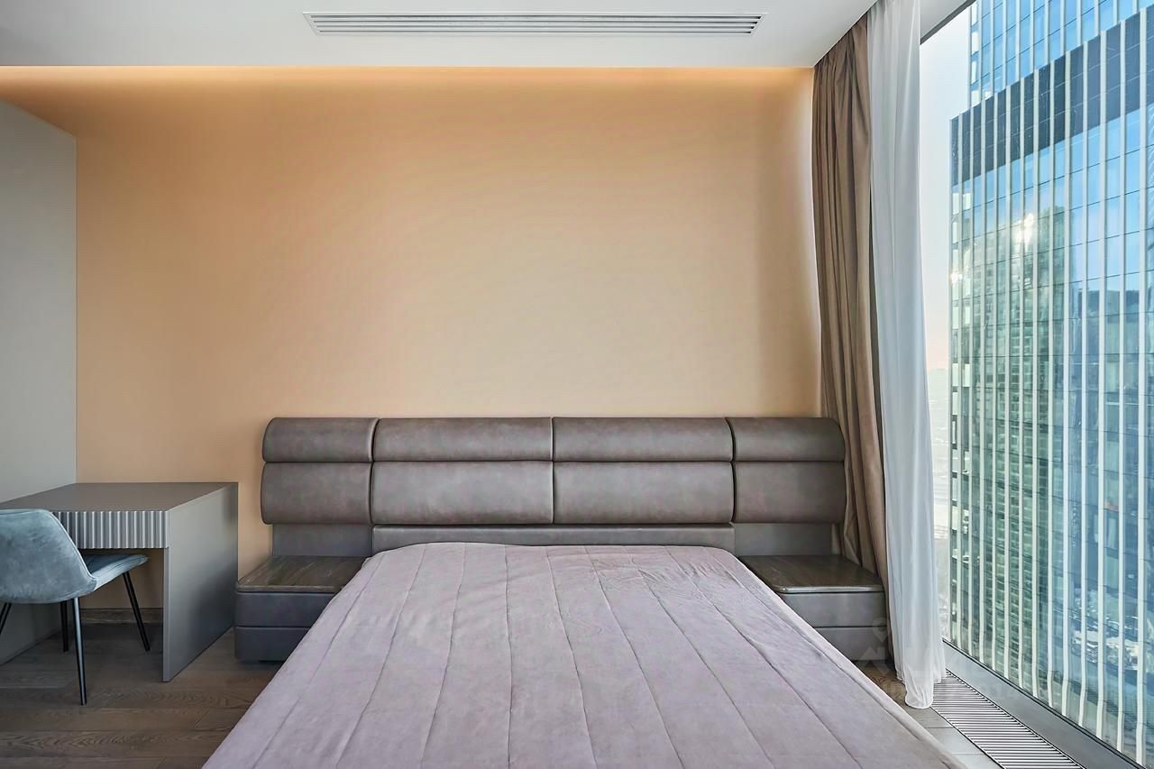 Предлагается в аренду стильный апартамент в башне Нева 2 — одном из самых престижных небоскрёбов Москва-Сити. Панорамное остекление от пола до потолка открывает впечатляющий вид на западную часть города и завораживающие закаты над мегаполисом.