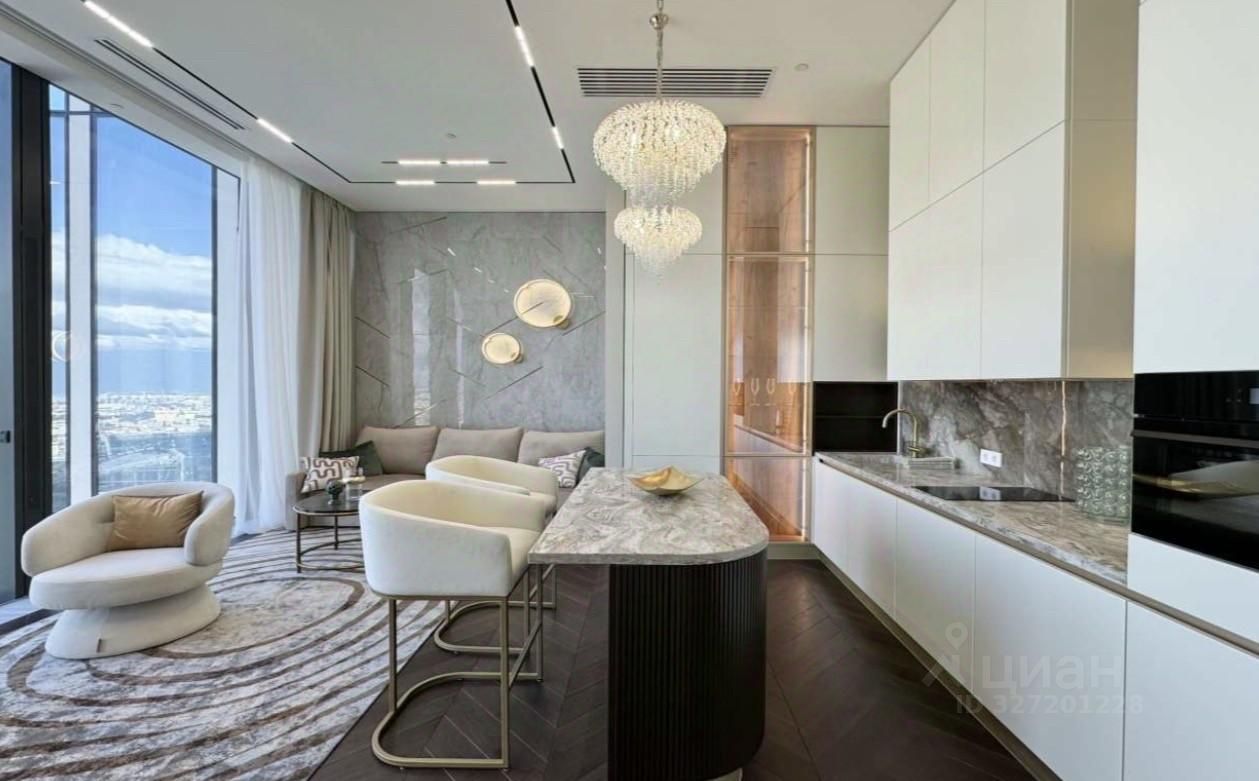 Предлагаются великолепные апартаменты в комплексе Neva Towers общей площадью 85 м2 с дизайнерской отделкой на 65 этаже.