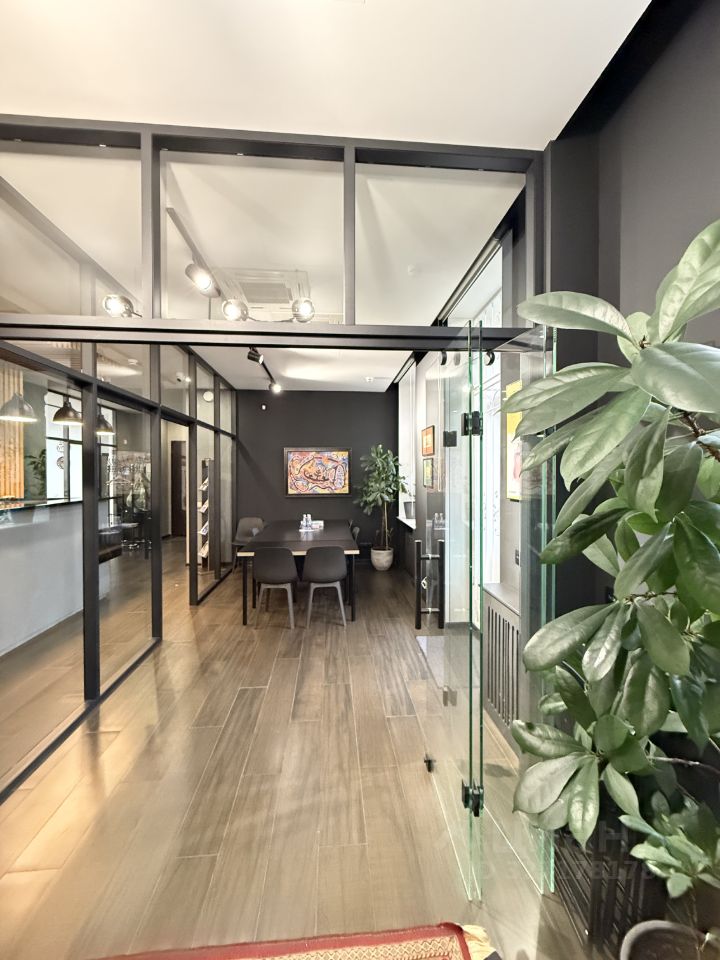- Пространство включает в себя зоны open space, отдельные кабинеты, кухню, два санузла и кладовую, что позволяет эффективно организовать рабочий процесс.