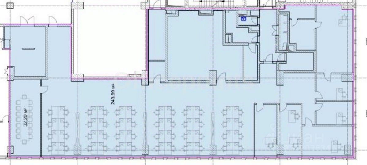 В помещении выполнена офисная отделка, смешанная планировка.