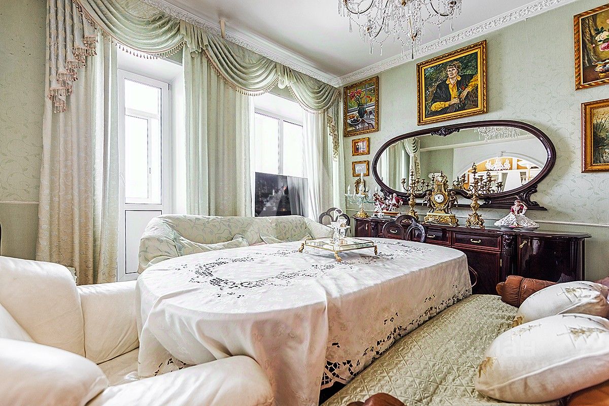 Интерьер выполнен в классическом стиле. Квартира полностью меблирована и укомплектована бытовой техникой.