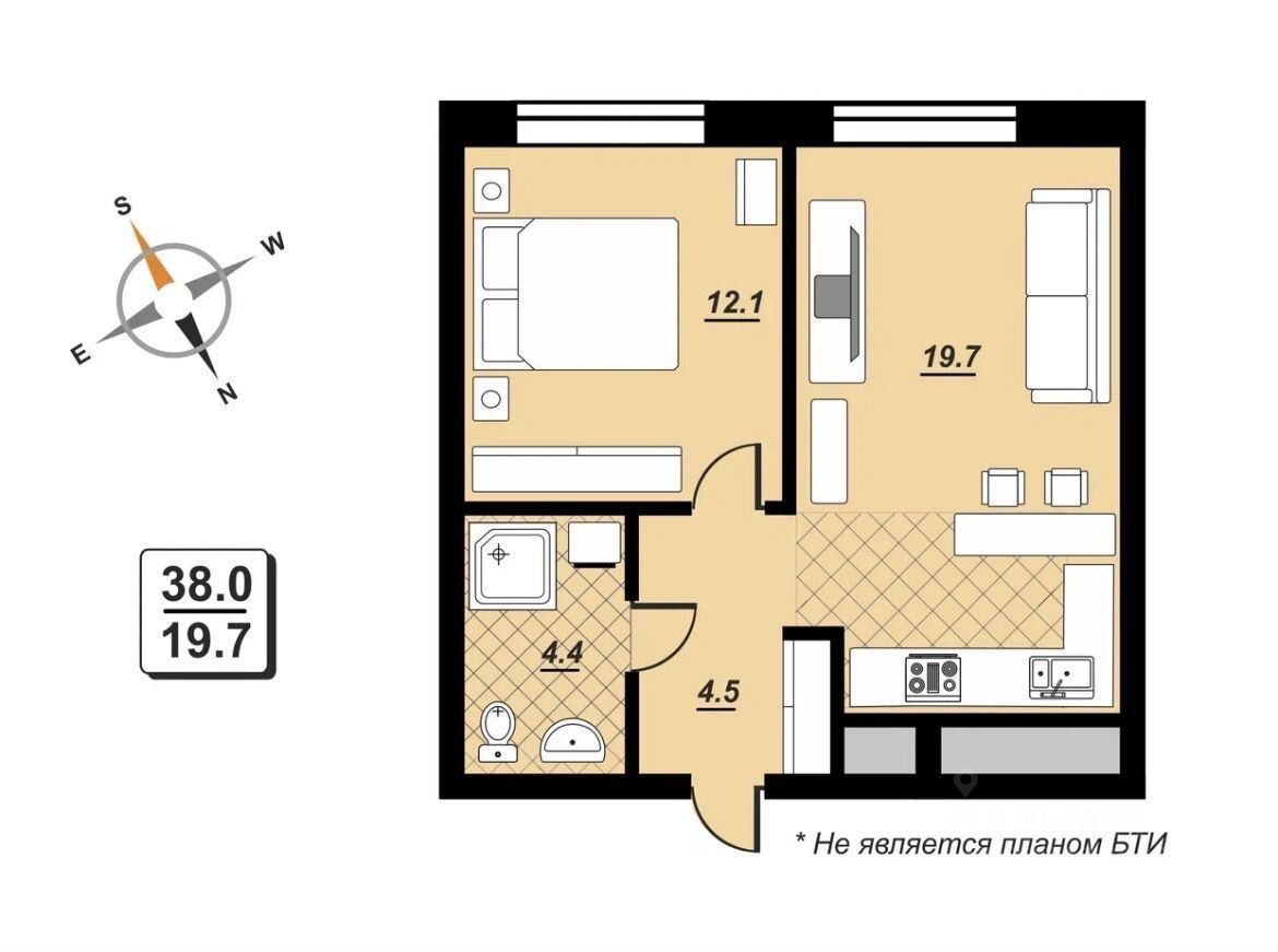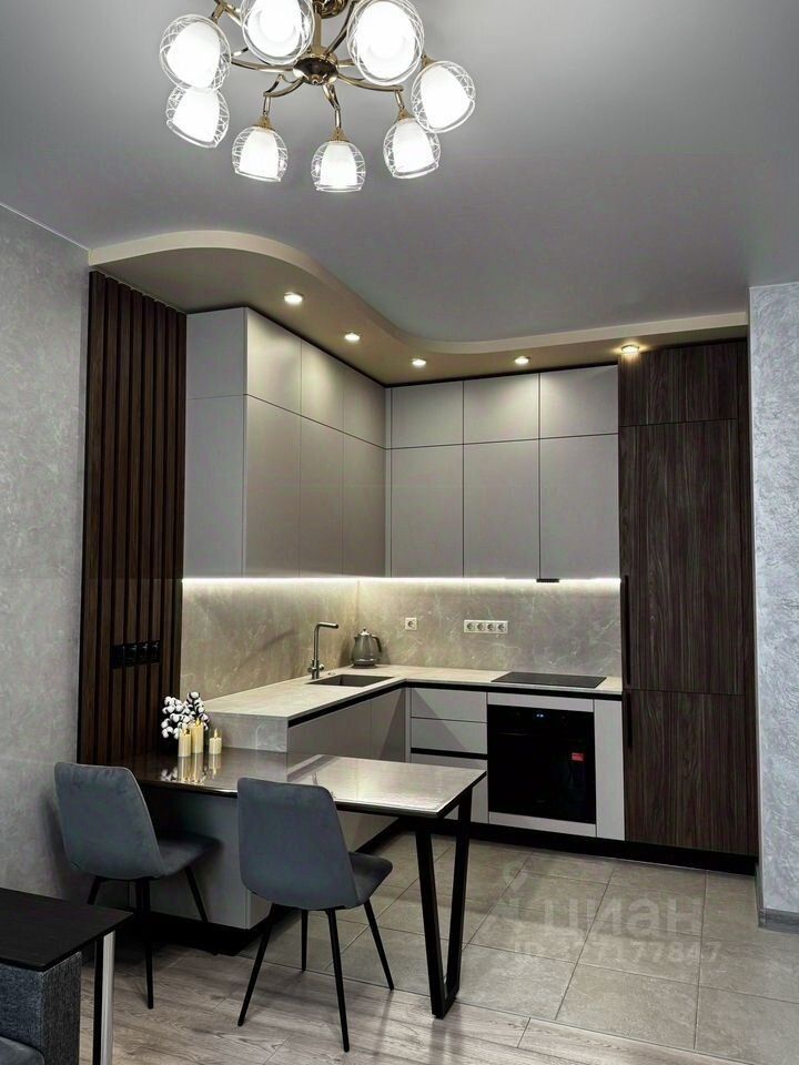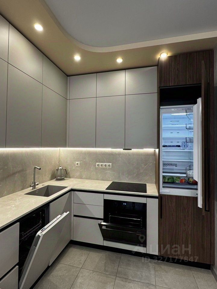 . Кваpтиpа расположена на 4 этаже 21-этажного монолитного дома 2019 года постройки. Высокие потолки 3 м. Квартира полностью обустроена. Ванная комната: сантехника, стиральная машина, электрический полотенцесушитель, мебель, вытяжка. Просторная гостиная-кухня с новым кухонным гарнитуром от фирмы ''Стильные Кухни'' и техникой Мidеа: холодильник, вытяжка, духовой шкаф, варочная панель, чайник, измельчитель и посудомоечная машина(есть микроволновая печь). Установлена система очистки воды с обратным осмосом ''Аквафор''. В комнате большой диван, который раскладывается в спальное место. Также в гостиной имеется телевизор. Спальня: новая мебель Аскона, кровать с ортопедическим матрасом. Коридор: входная группа, шкаф-купе, обувница, кондиционер.