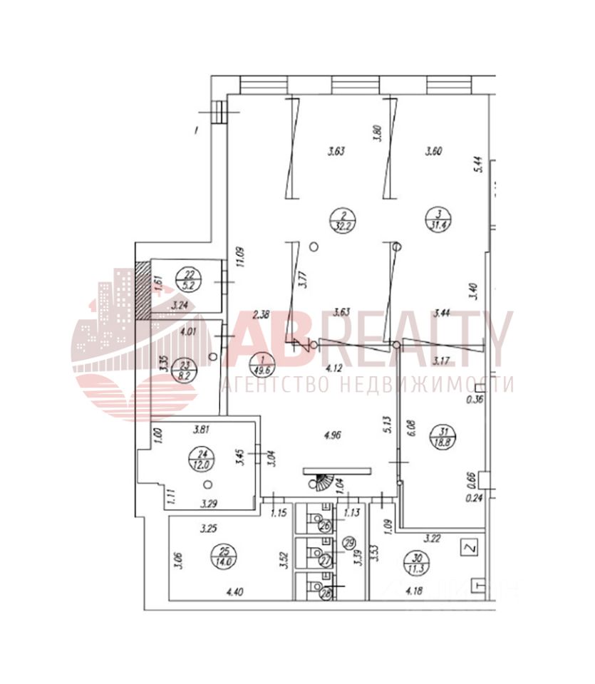 В современном бизнес-центре продается помещение площадью 209,8 кв.м. Класс В+.