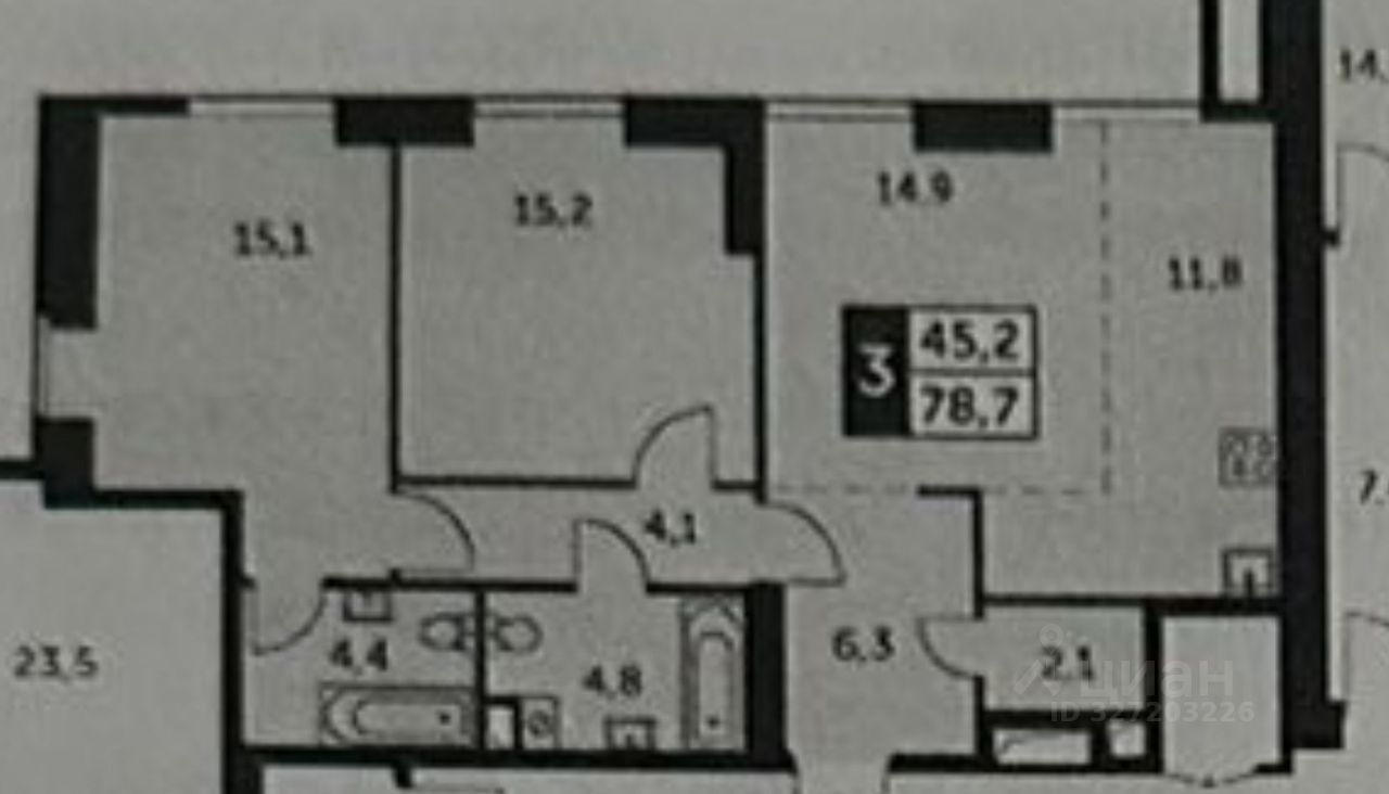 Продается трехкомнатная квартира в современном жилом комплексе Архитектор. Общая площадь составляет 79 квадратных метров, жилая площадь — 45,2 квадратных метра, кухня — 11,8 квадратных метров. Квартира расположена на 28 этаже 47-этажного дома. Высокие потолки 3,05 метра создают ощущение простора. До станции метро Калужская всего 12 минут пешком.