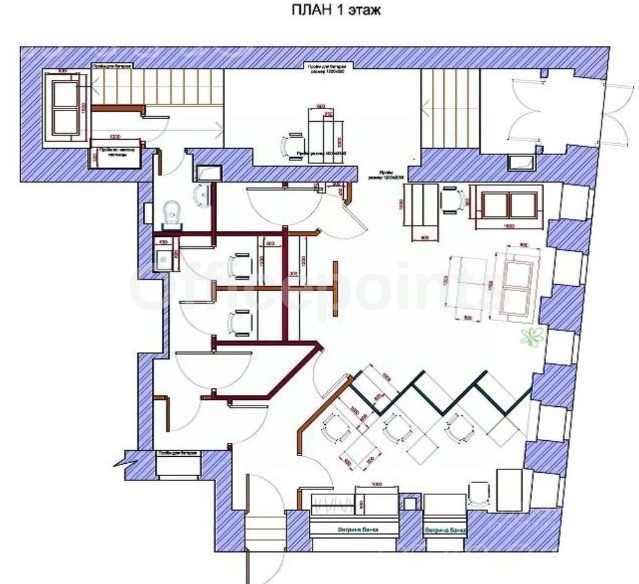 Помещение с отделкой, смешанная планировка.